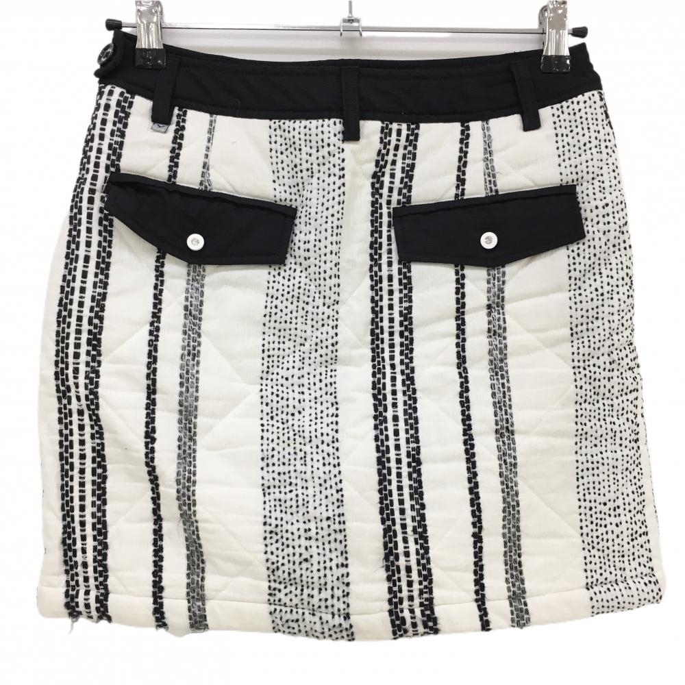 【美品】キャロウェイ 中綿スカート 白×黒 キルティング 織生地 ストライプ調 レディース M ゴルフウェア Callaway