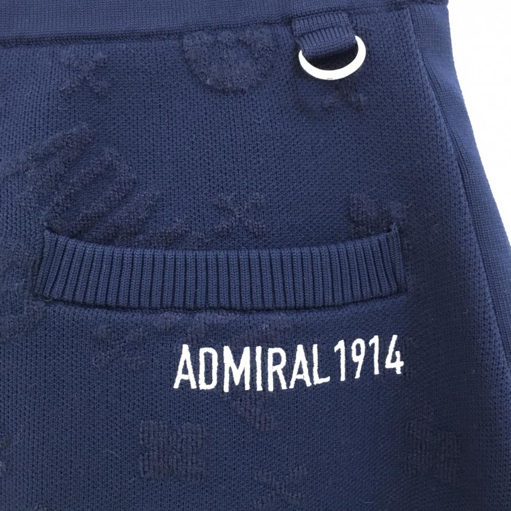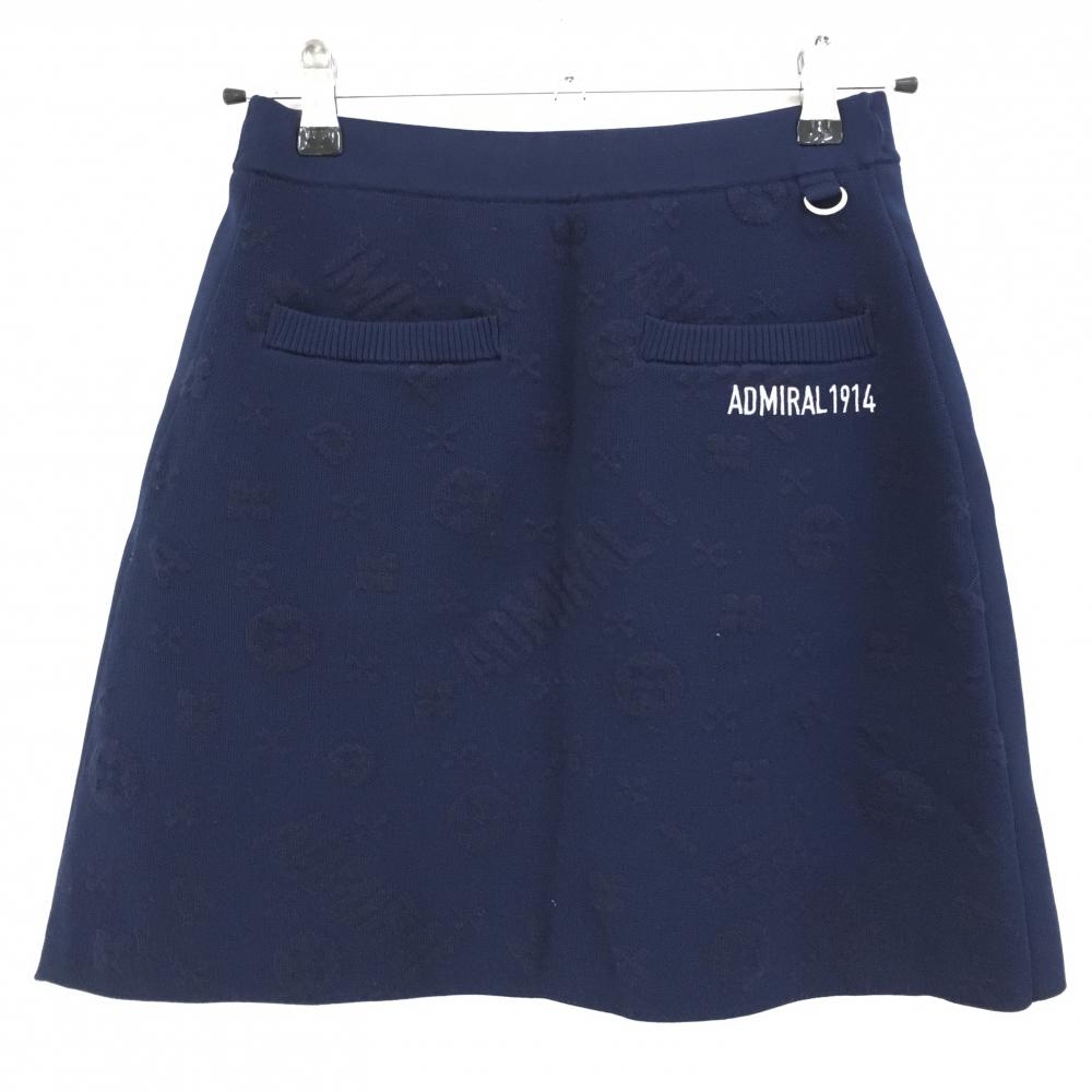 【超美品】アドミラル ニットスカート ネイビー 総柄編み ウール混 ウエストゴム&調節紐 裏地付 レディース M ゴルフウェア Admiral