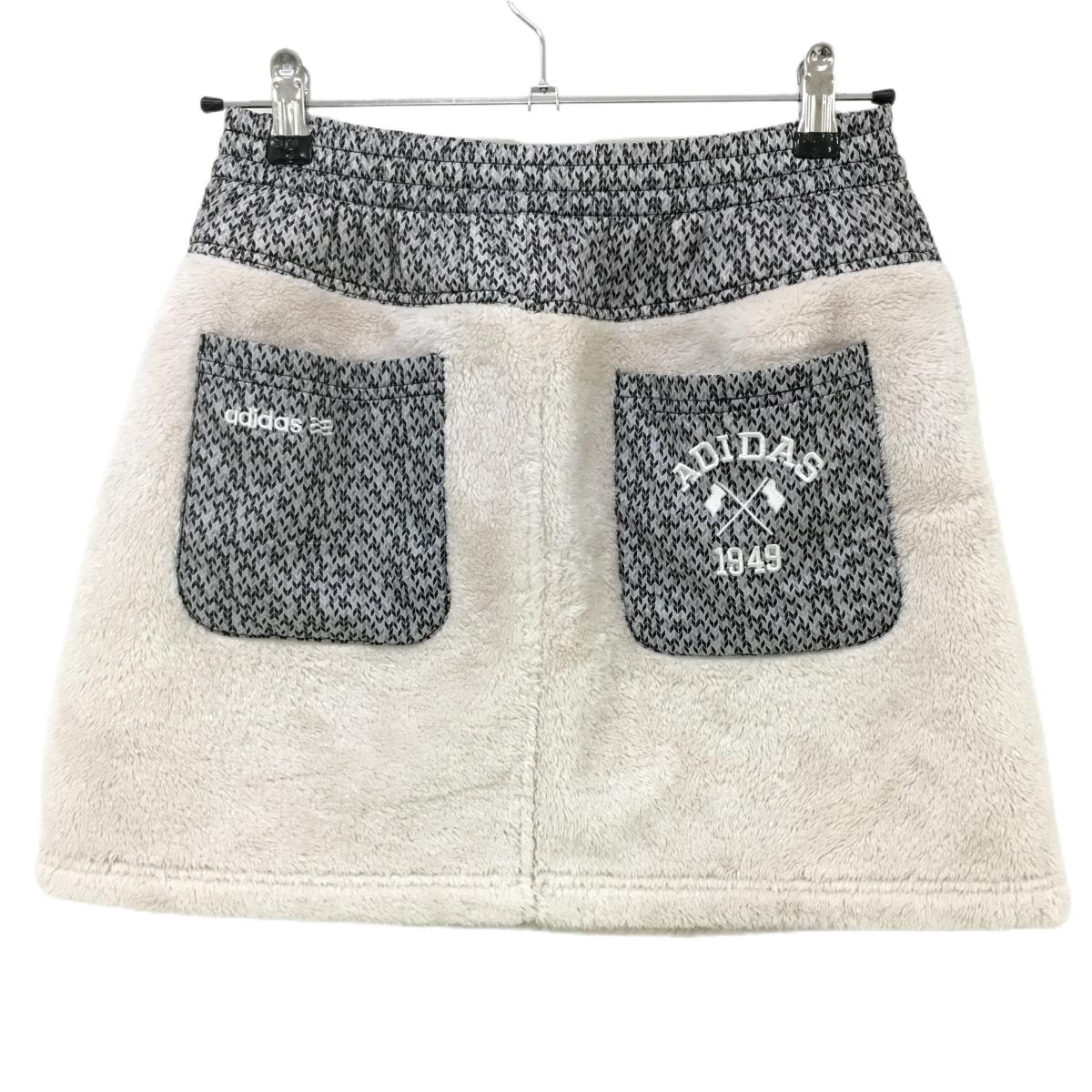 【超美品】アディダス ボアスカート アイボリー×グレー バックロゴ刺しゅう ウエストゴム レディース M/M ゴルフウェア adidas