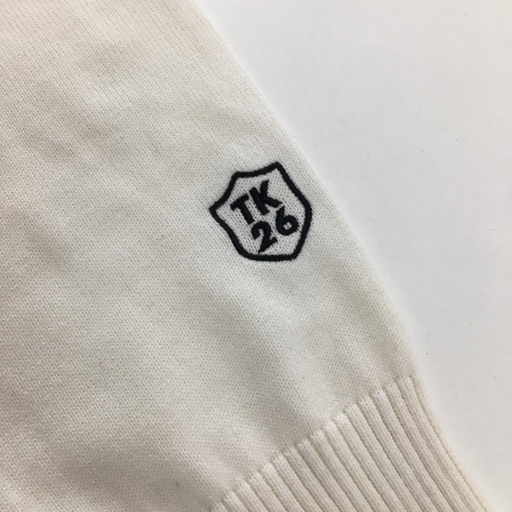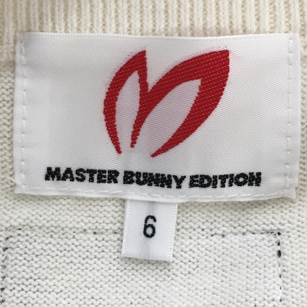 【美品】マスターバニー セーター 白×黒 カシミヤ混 ビッグロゴ ニット メンズ 6(XL) ゴルフウェア MASTER BUNNY EDITION