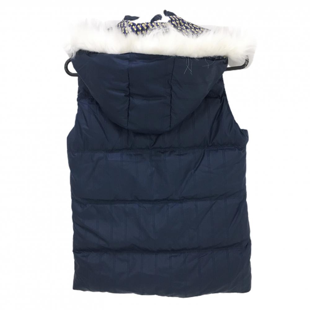 【美品】キャロウェイ ダウンベスト ネイビー フード・ファー着脱可 レディース L ゴルフウェア Callaway