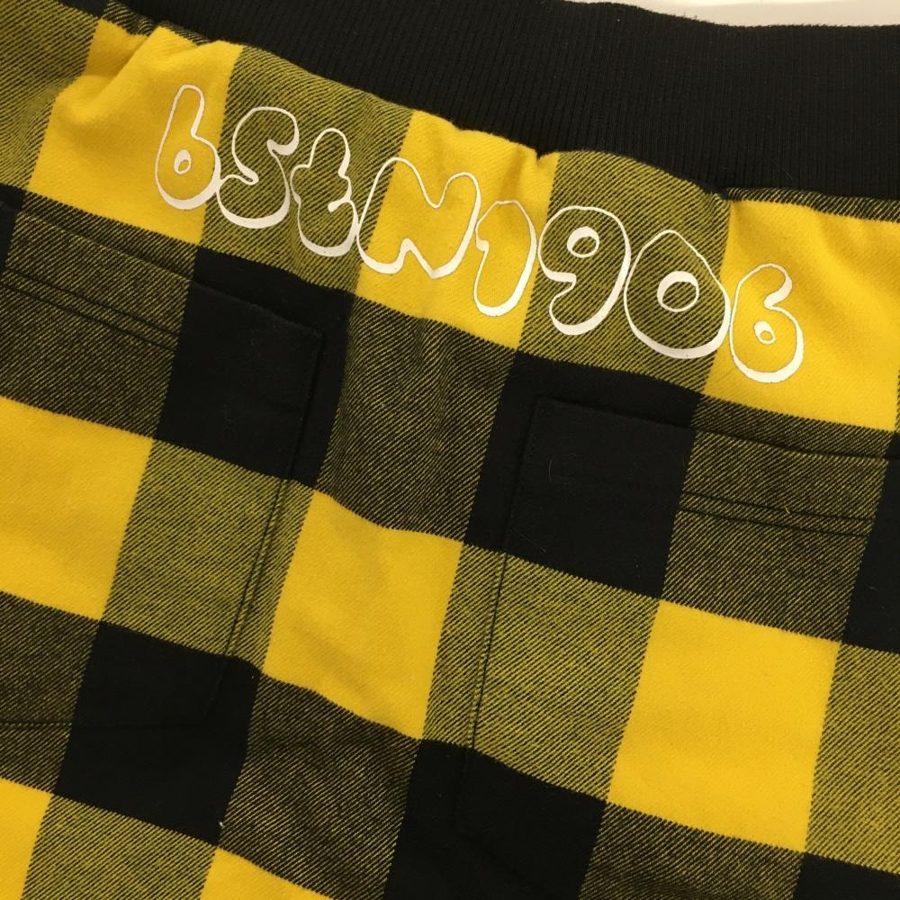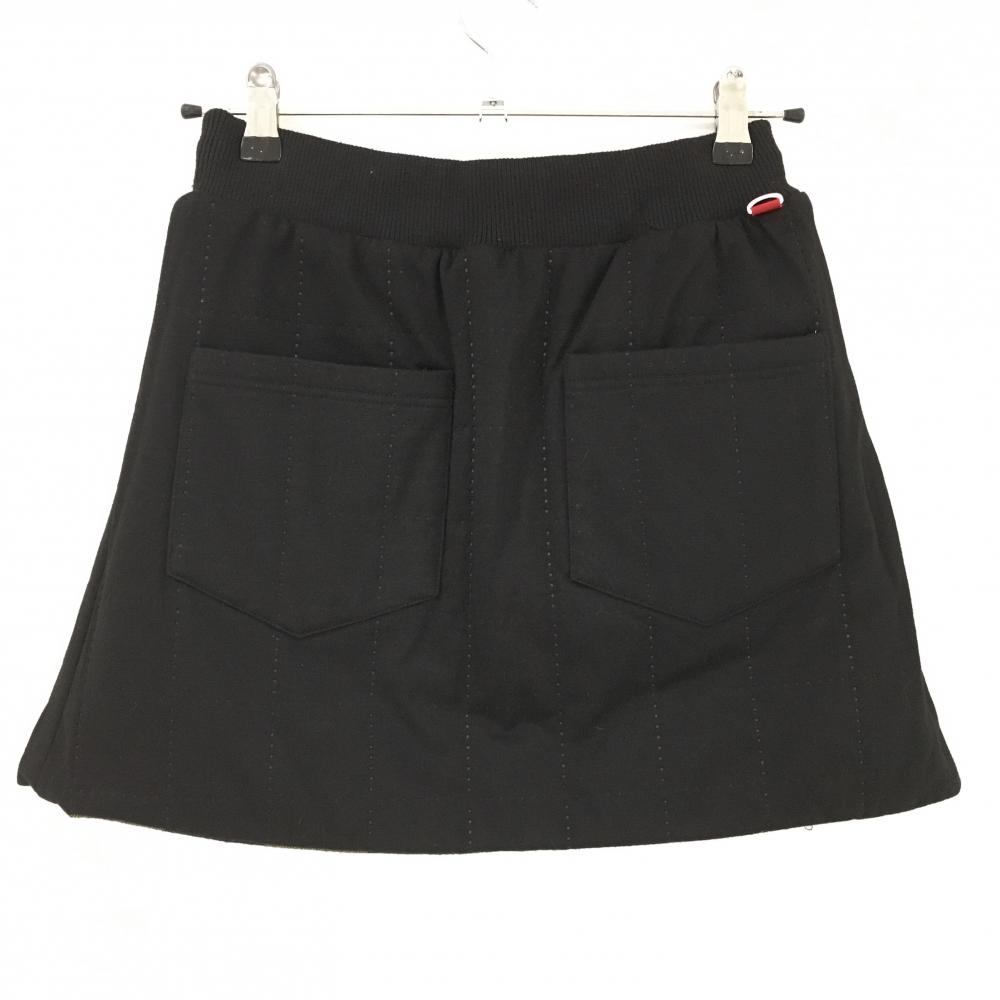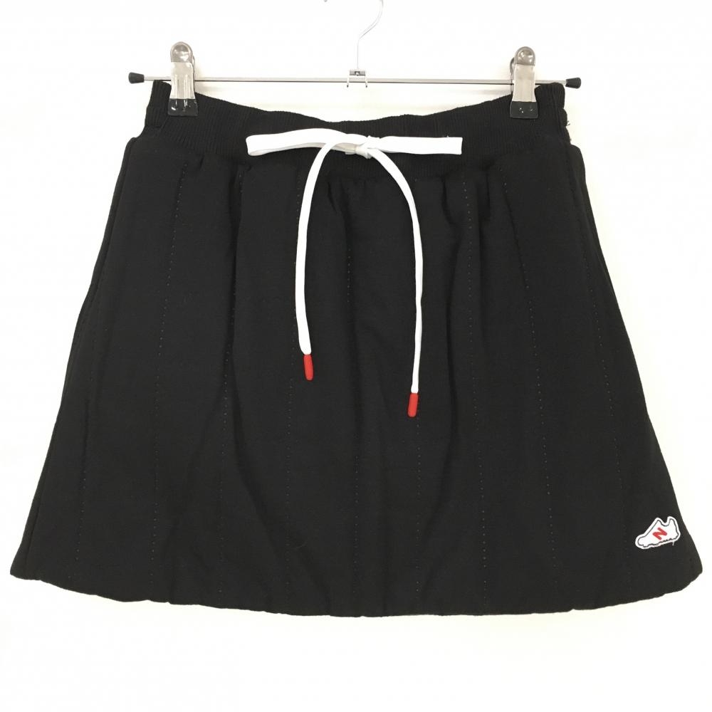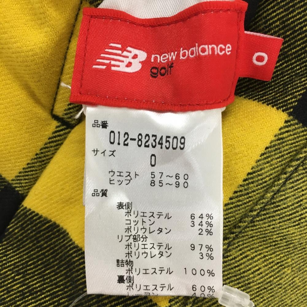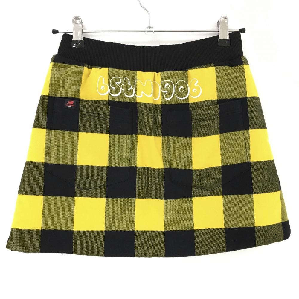 【美品】ニューバランス リバーシブル中綿スカート 黒×イエロー チェック 裏シューズワッペン レディース 0(S) ゴルフウェア New Balance