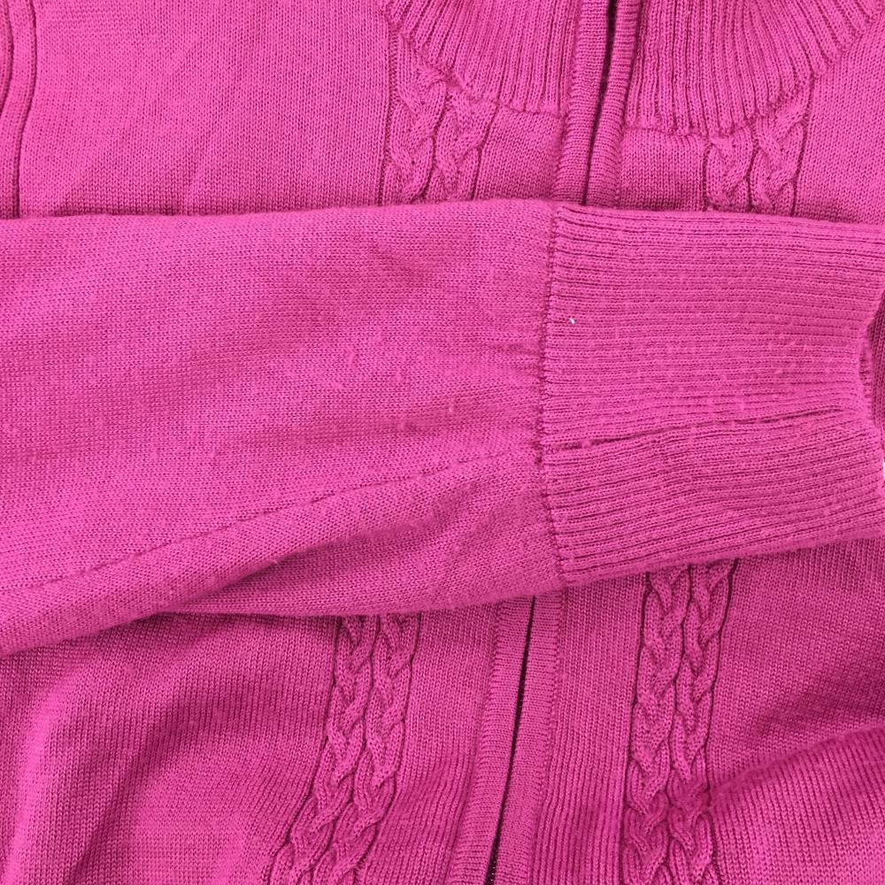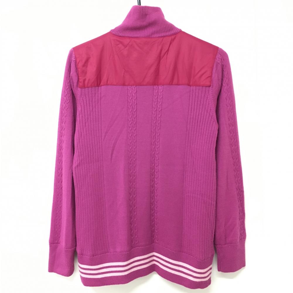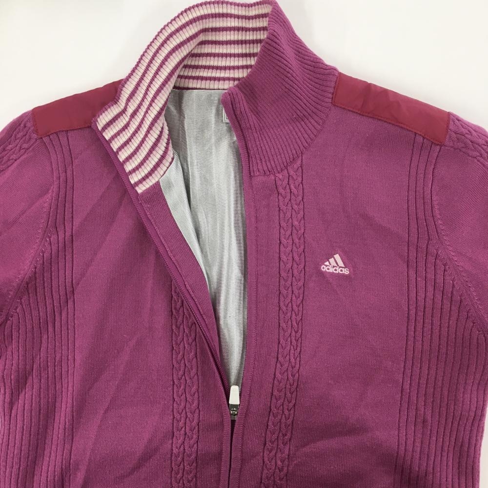 【美品】アディダス ニットジャケット ピンク 蓄熱裏地 一部ケーブル編み ウール混 一部異素材 レディース L/G ゴルフウェア adidas