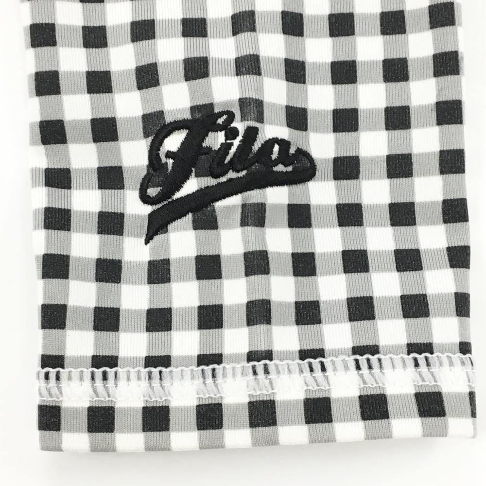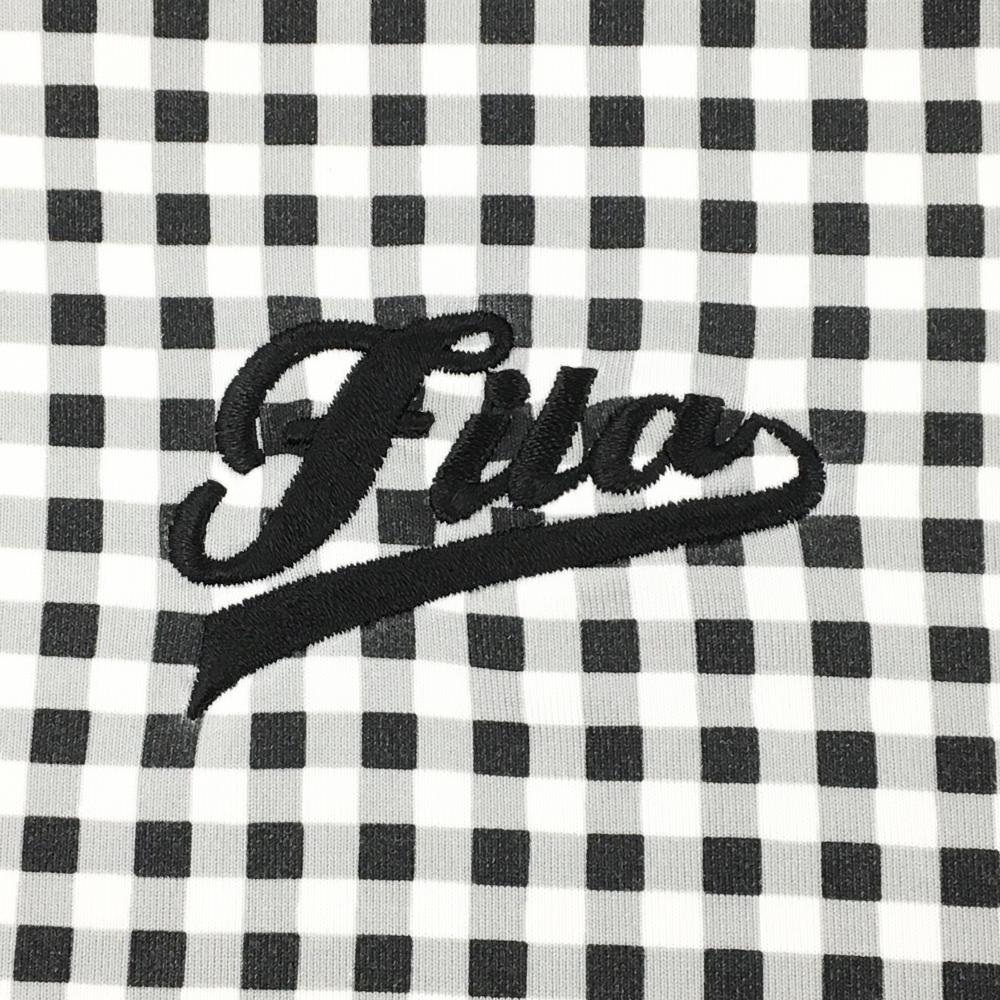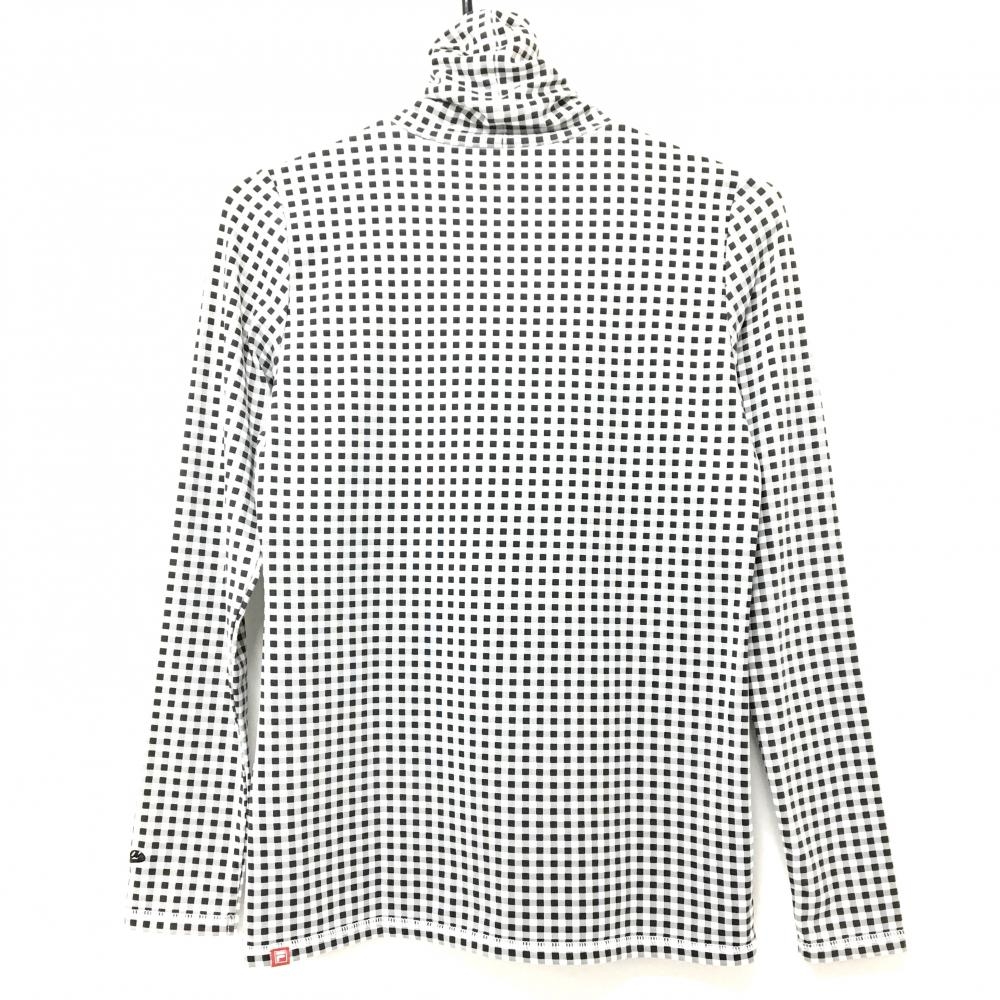 フィラゴルフ 長袖ハイネックシャツ 黒×白 チェック柄 ロゴ刺しゅう レディース M ゴルフウェア FILA GOLF