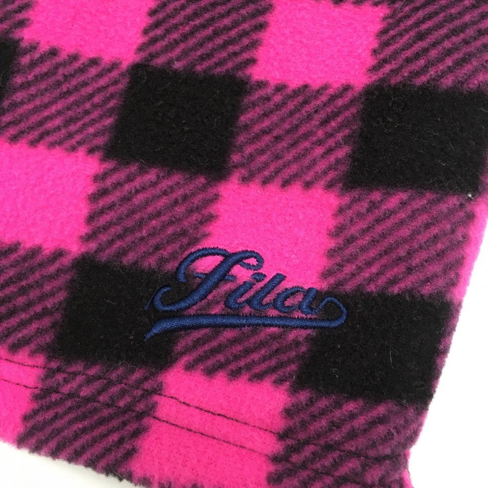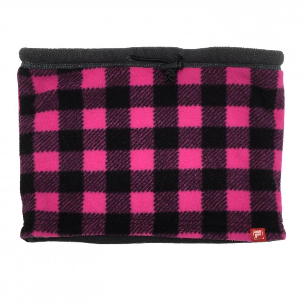 【美品】フィラゴルフ ネックウォーマー ピンク×黒 チェック柄 フリース ドローコード ゴルフウェア FILA GOLF