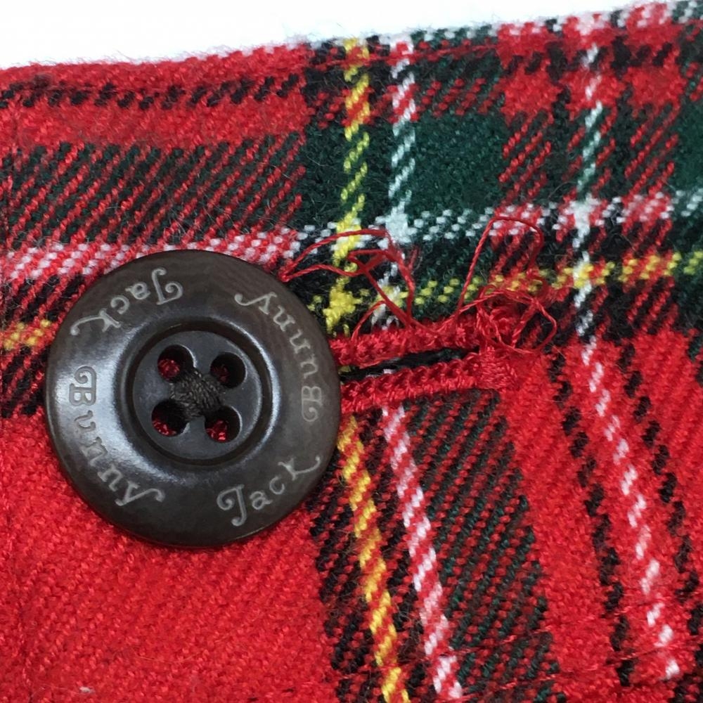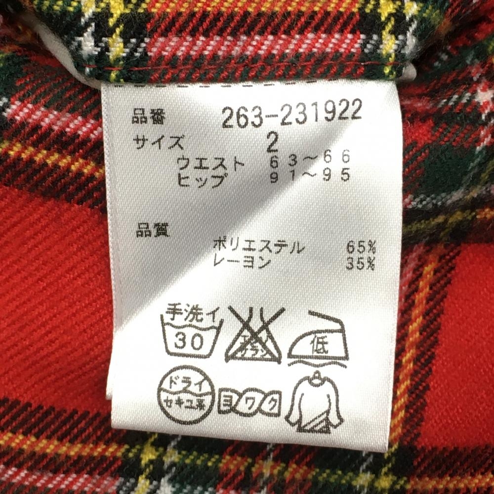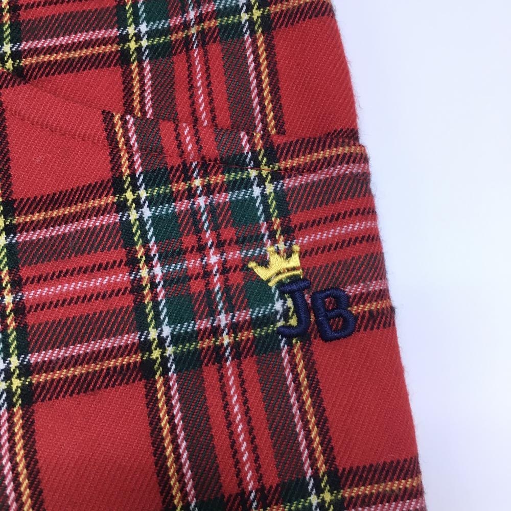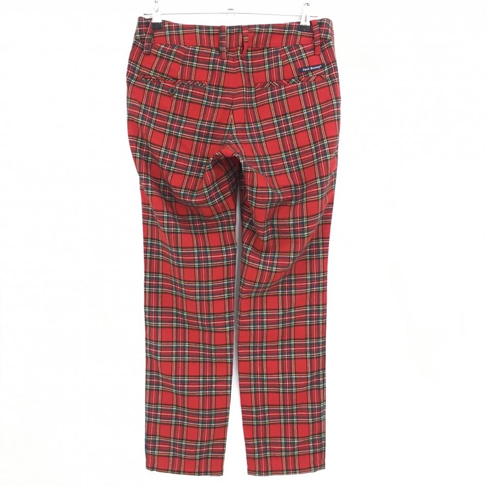 【美品】ジャックバニー パンツ レッド×グリーン チェック ロゴ刺しゅう レディース 2(L) ゴルフウェア Jack Bunny