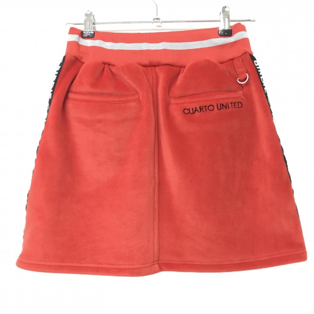 【美品】クアルトユナイテッド スカート オレンジレッド×黒 サイドテープ 起毛素材 レディース S ゴルフウェア CUARTO UNITED