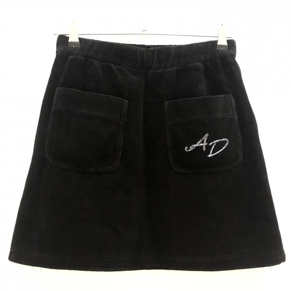 【超美品】アダバット スカート 黒 ベロア調 ストレッチ 蓄熱裏地 レディース 36(S) ゴルフウェア adabat