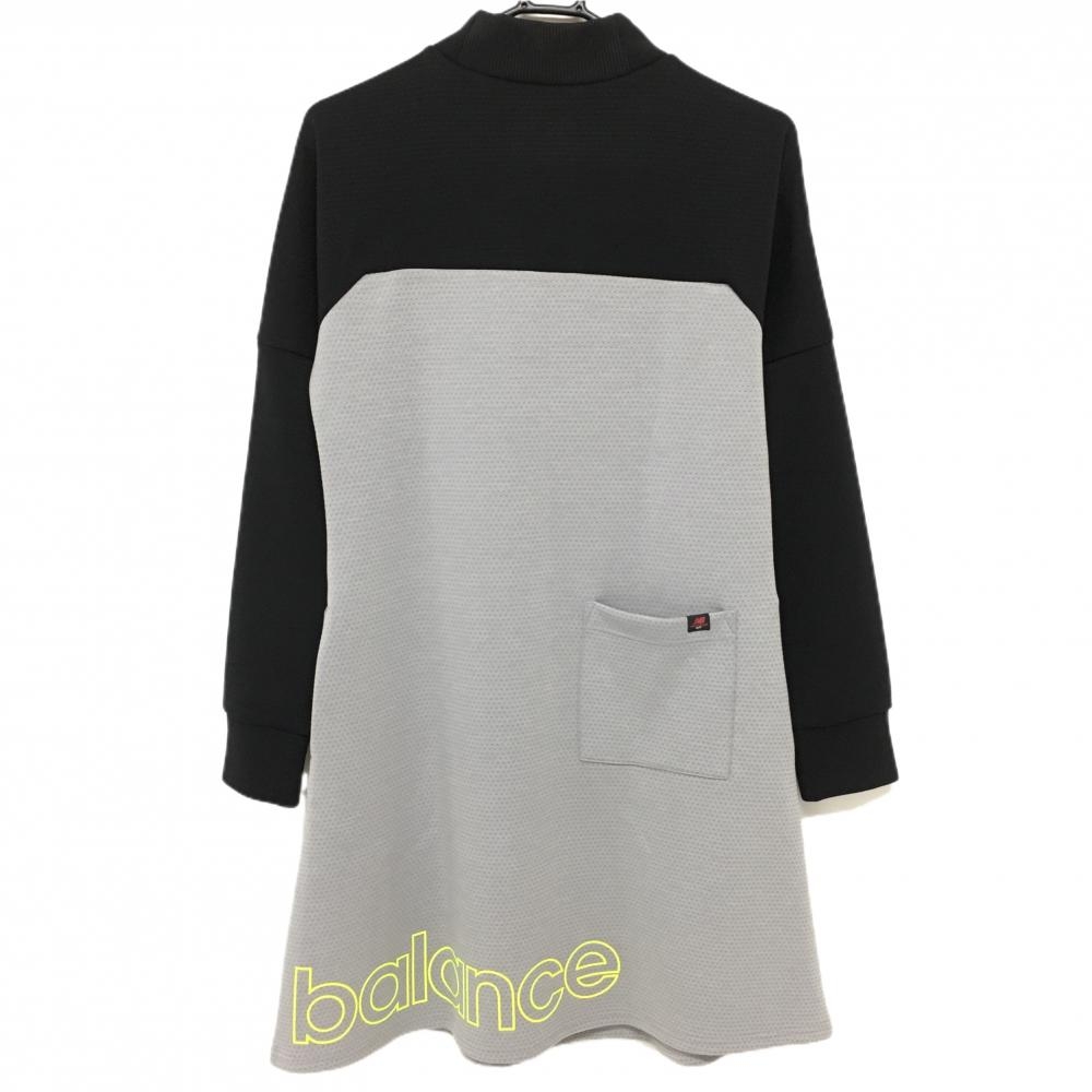 【超美品】ニューバランス ハイネックワンピース グレー×黒 織生地 袖ライン 裾ロゴプリント レディース 1(M) ゴルフウェア New Balance