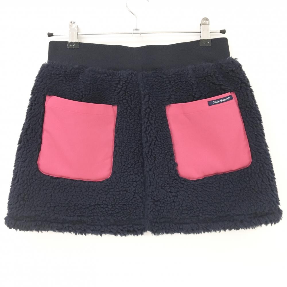 【美品】ジャックバニー ボアスカート ネイビー×ピンク インナーパンツ付 ジップポケット レディース 1(M) ゴルフウェア Jack Bunny
