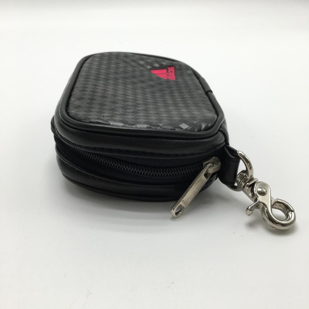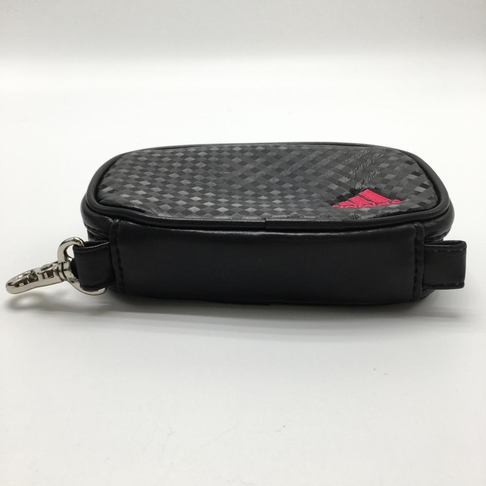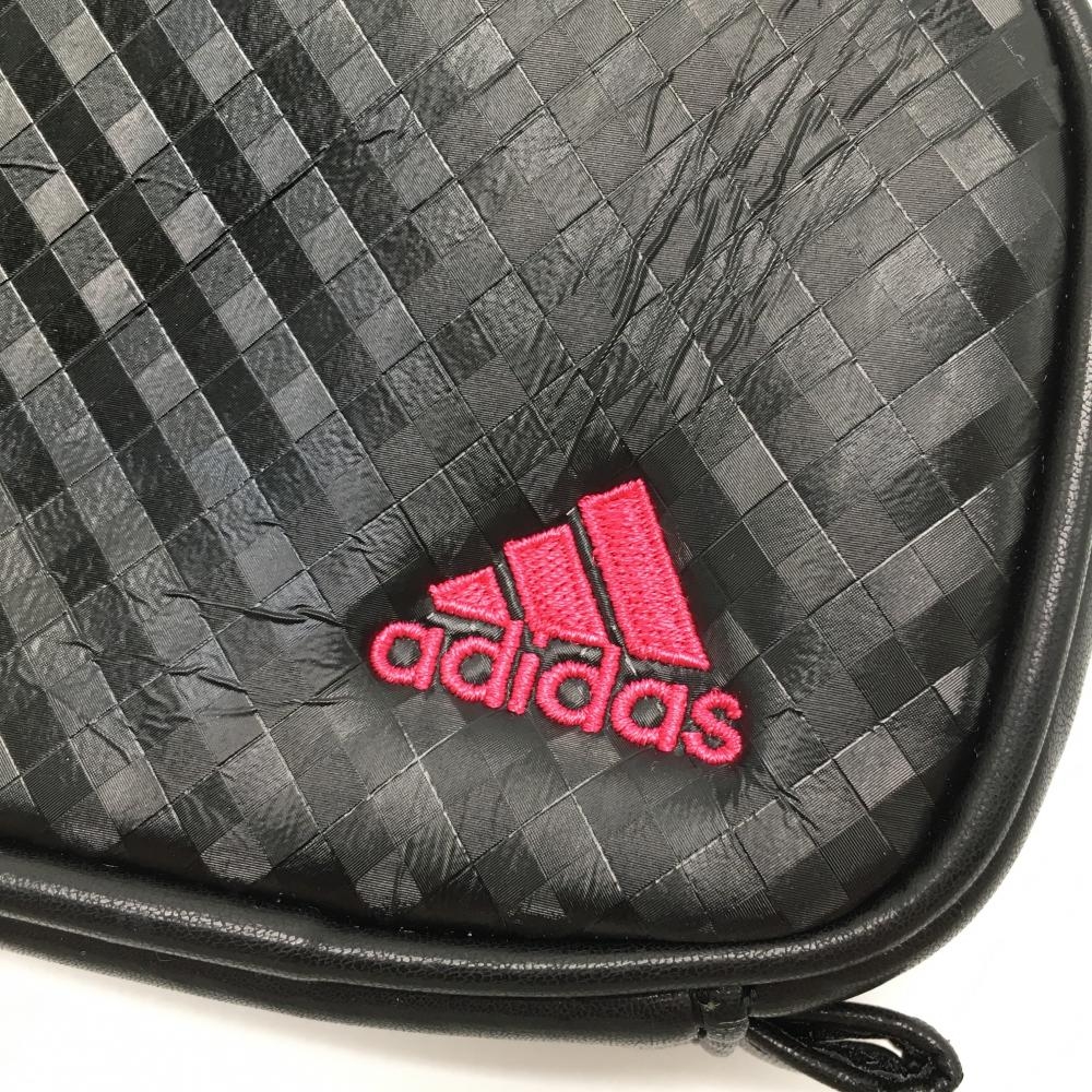 【美品】アディダス ポーチ 黒 チェック フック付 ロゴ刺しゅうゴルフ adidas