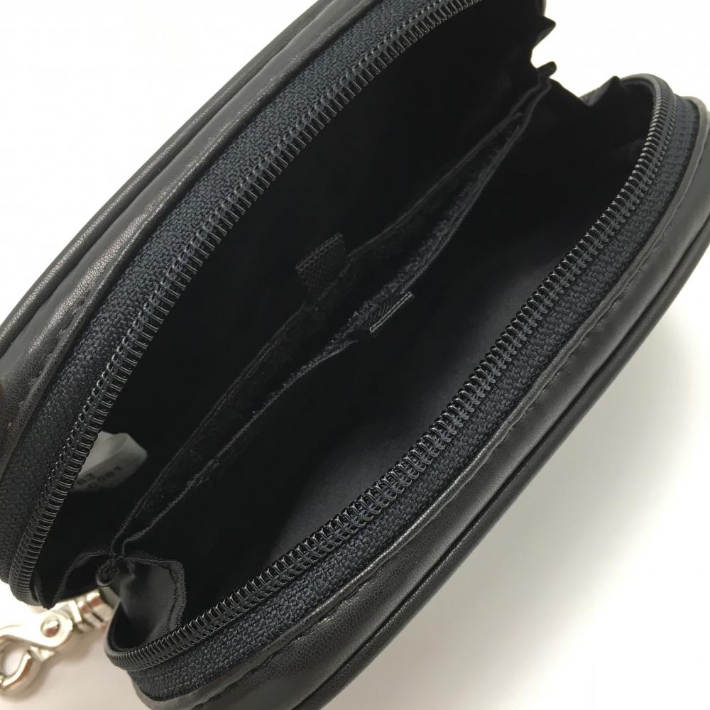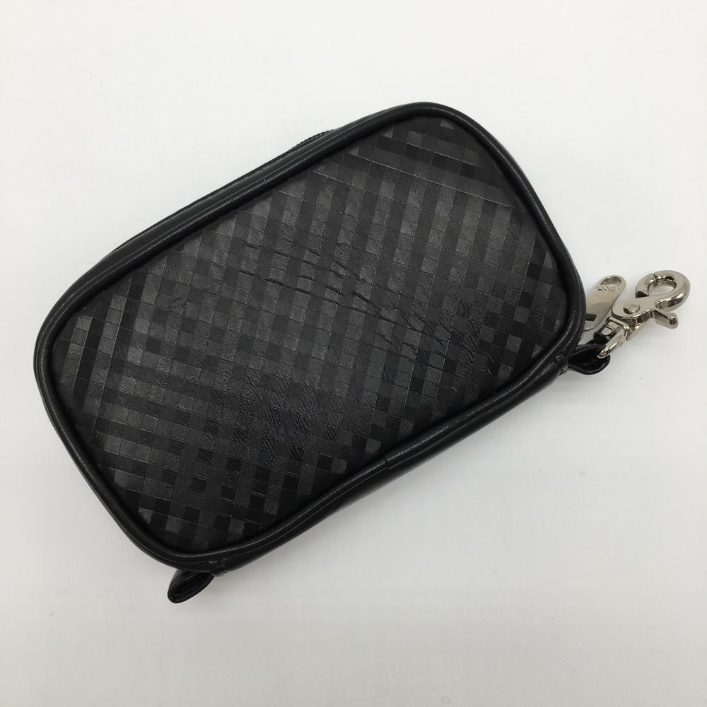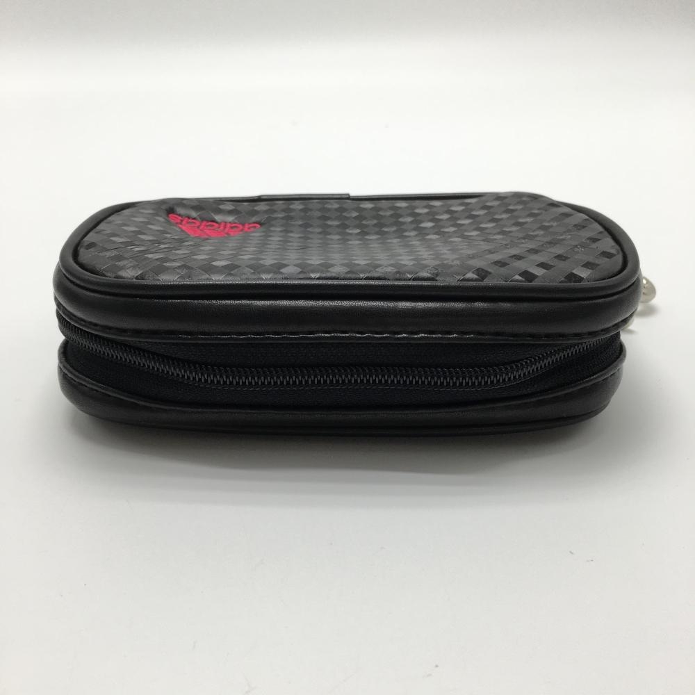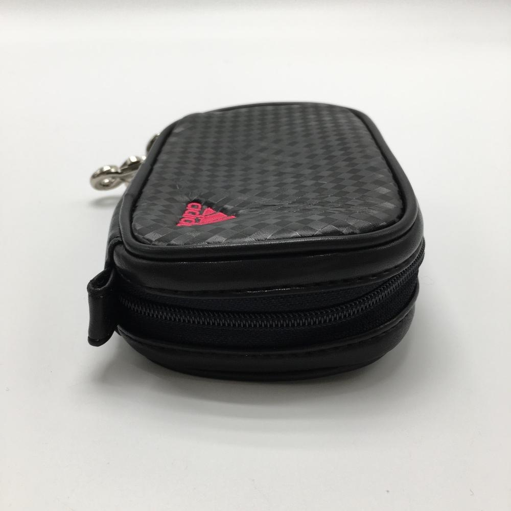 【美品】アディダス ポーチ 黒 チェック フック付 ロゴ刺しゅうゴルフ adidas