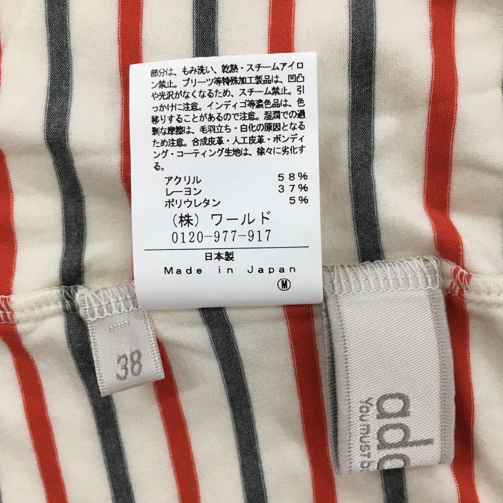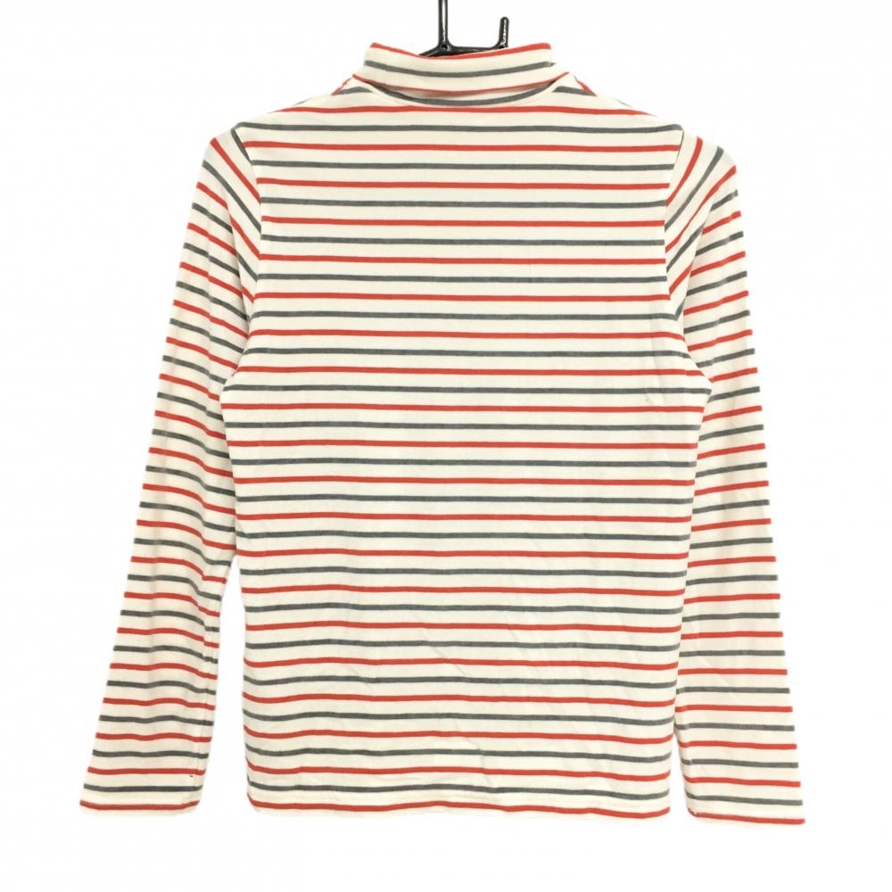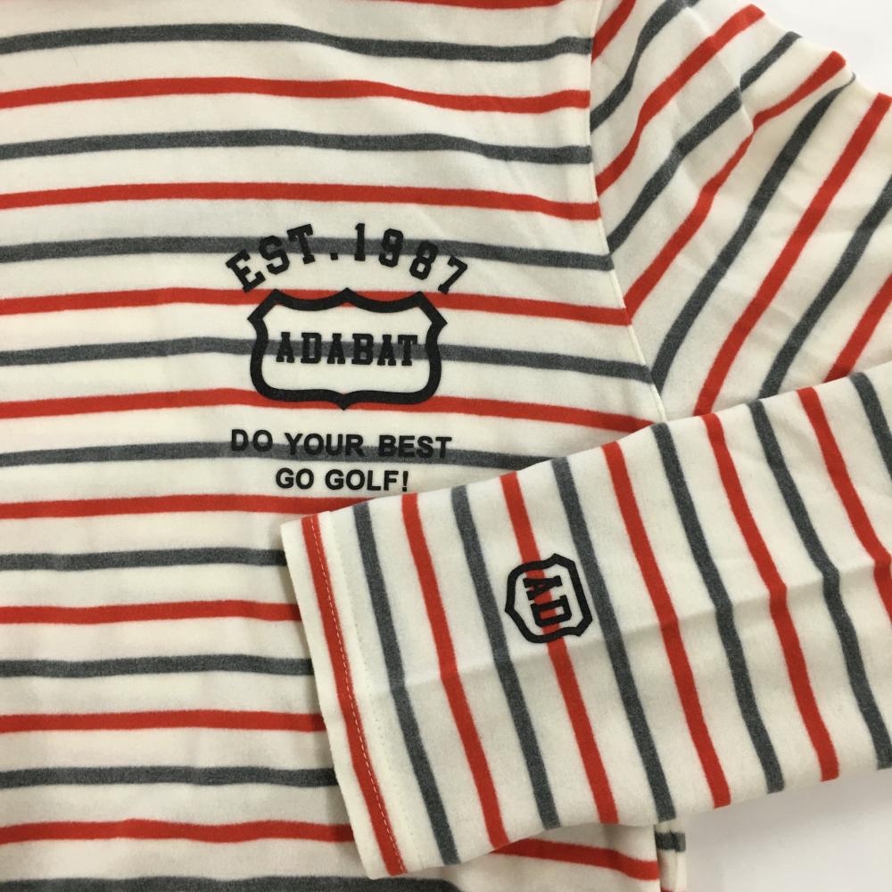 【超美品】アダバット 長袖ハイネックシャツ 白×レッド×グレー ボーダー 表微起毛 レディース 38(M) ゴルフウェア adabat