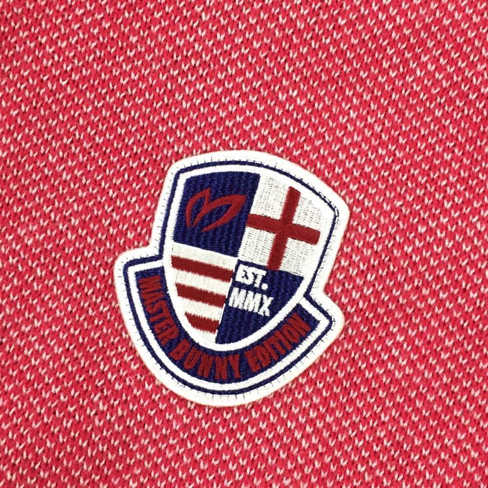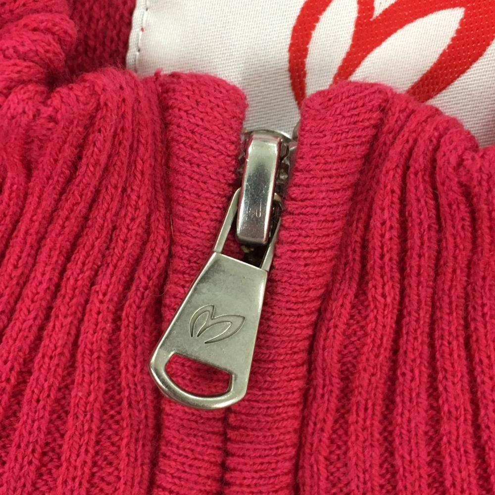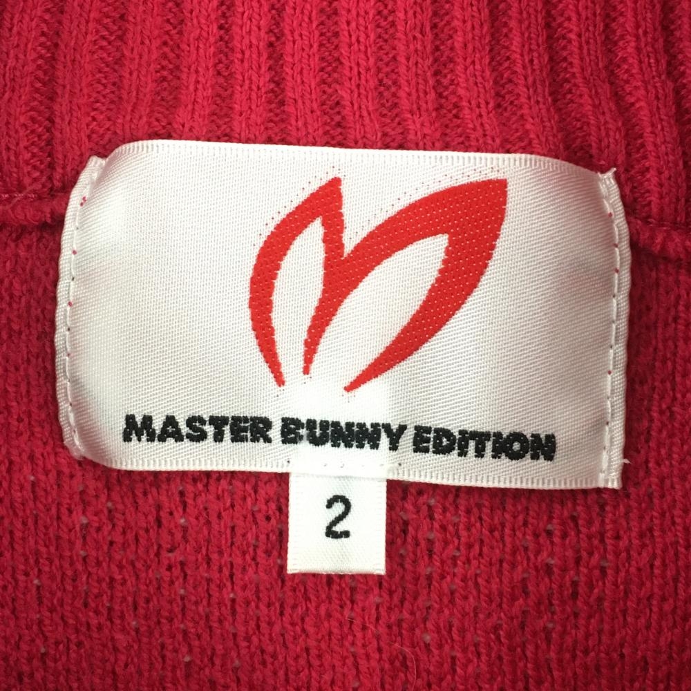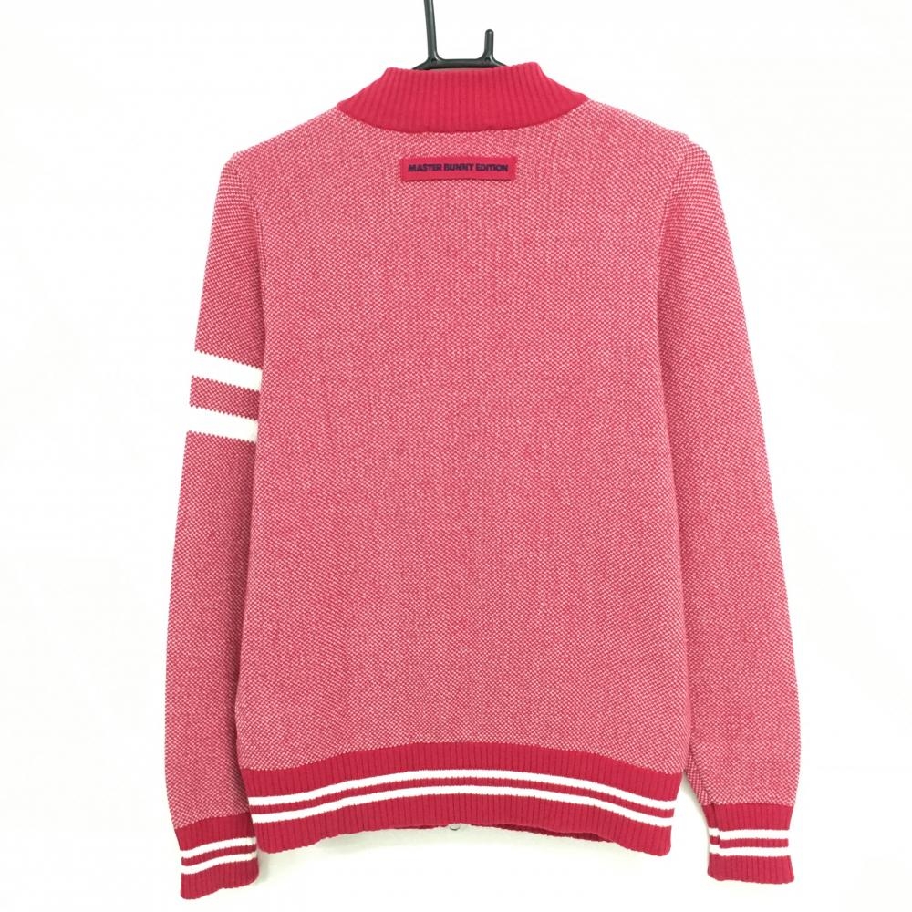 【美品】マスターバニー ニットジャケット ピンク×白 アクリル混 袖ライン レディース 2(L) ゴルフウェア MASTER BUNNY EDITION