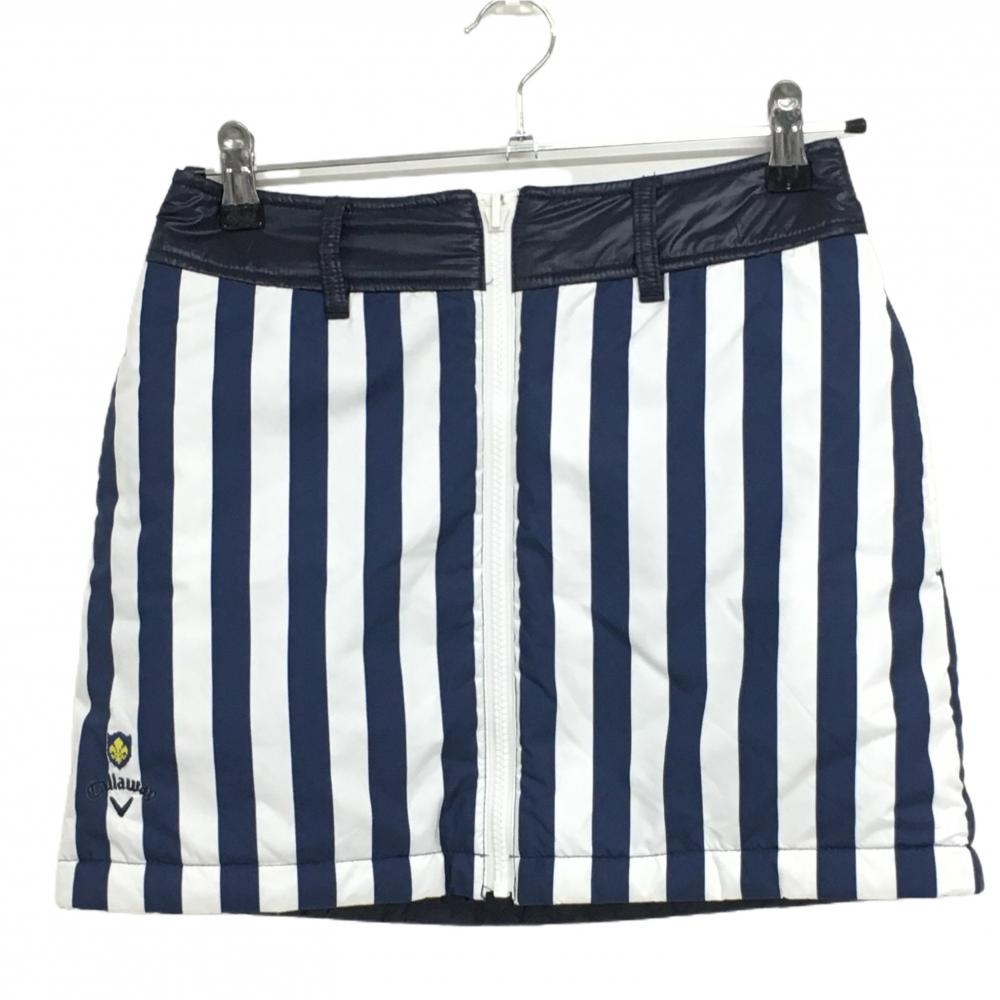 【超美品】キャロウェイ 中綿リバーシブルスカート ネイビー×白 キルティング 裏ストライプ レディース SS ゴルフウェア Callaway