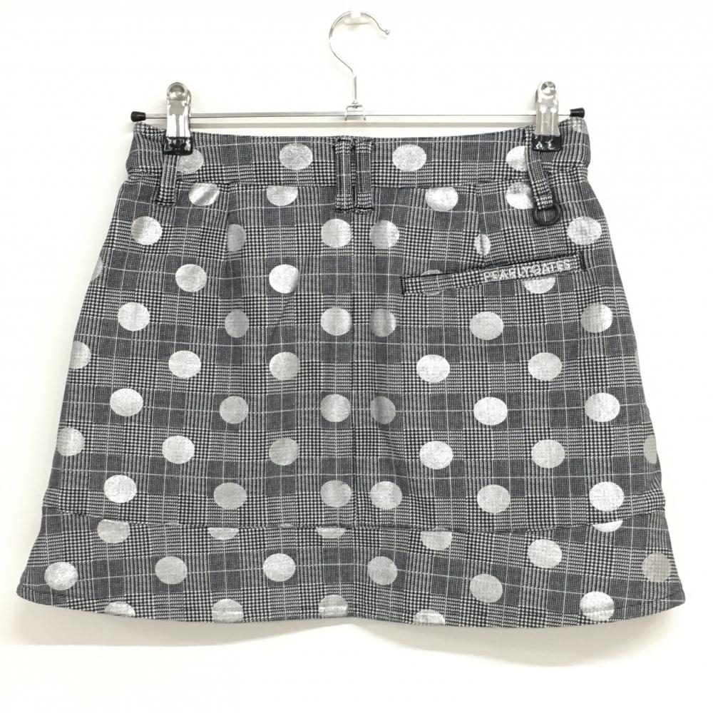 【美品】パーリーゲイツ スカート 黒×シルバー グレンチェック ドット レディース 0(S) ゴルフウェア PEARLY GATES