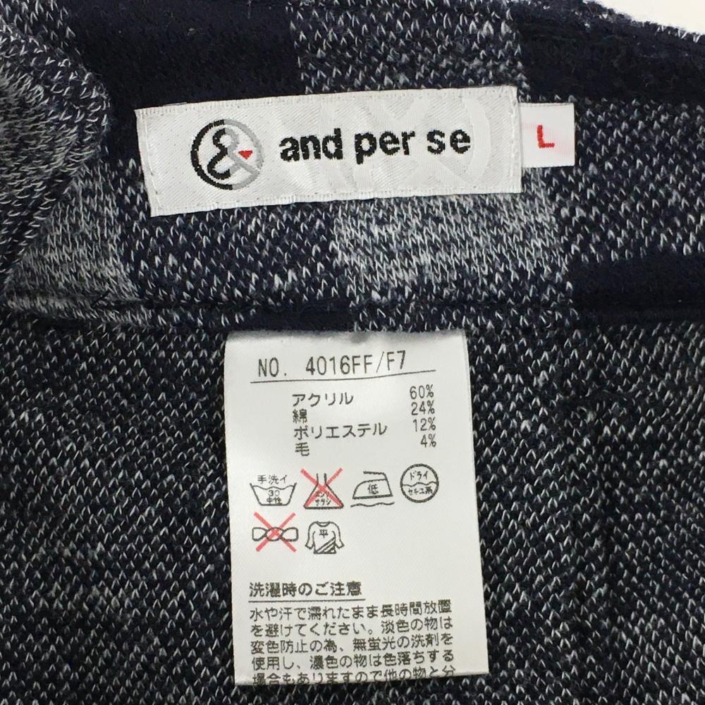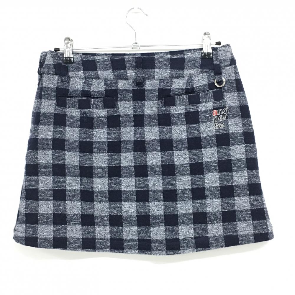 【美品】アンパスィ スカート ネイビー×グレー チェック ウール混 レディース L ゴルフウェア and per se