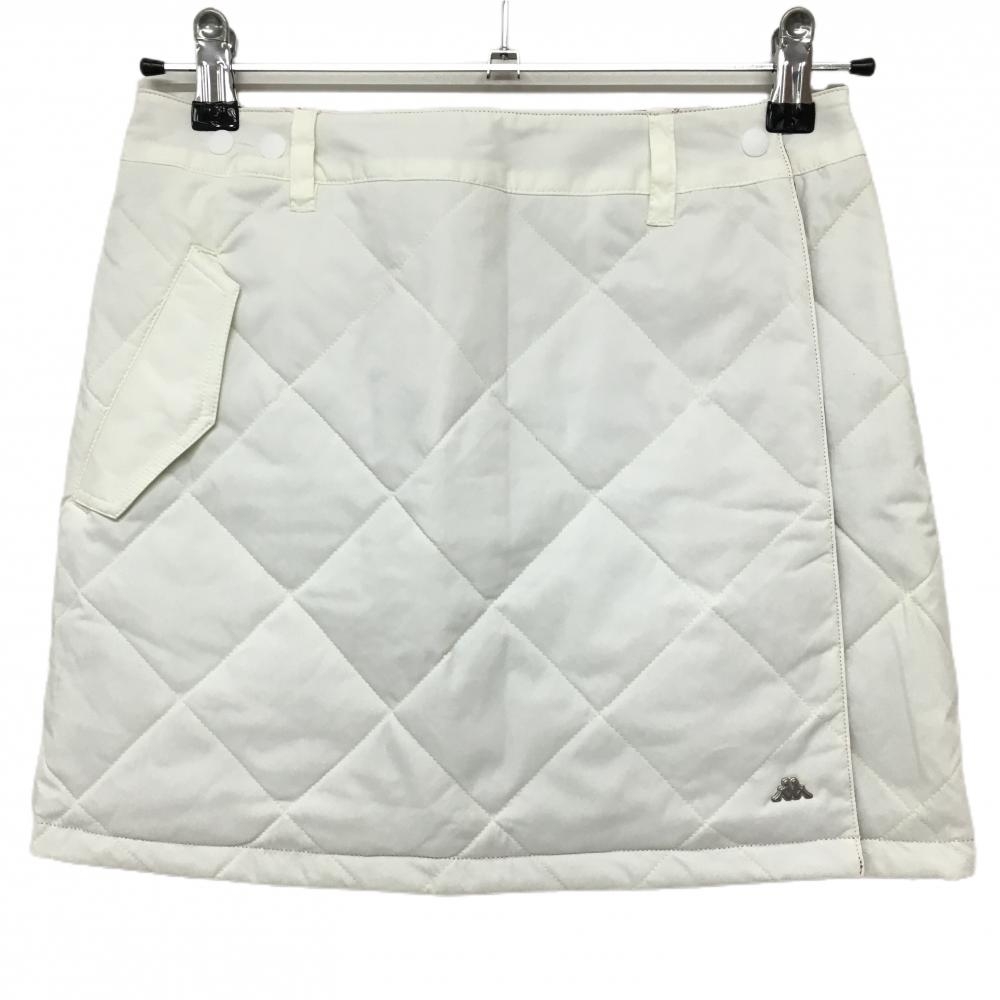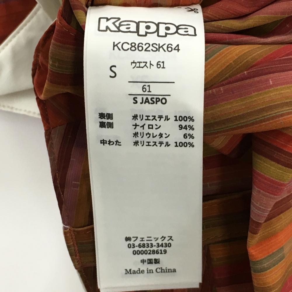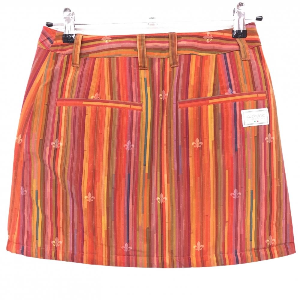【美品】カッパ 中綿リバーシブルスカート レッド×オレンジ 裏白 ストライプ調 立体ロゴ レディース S ゴルフウェア Kappa