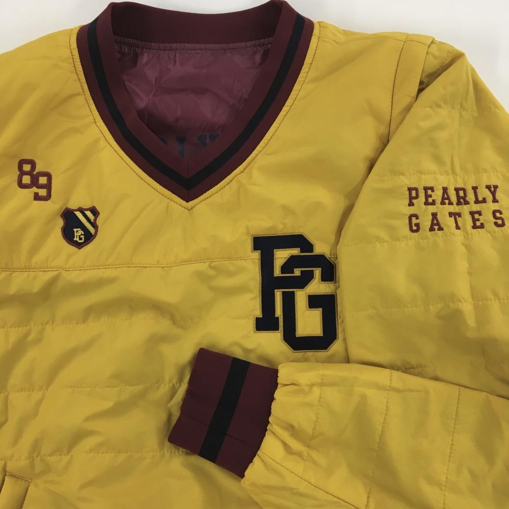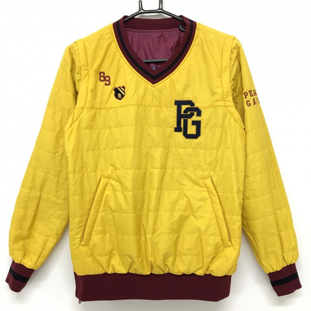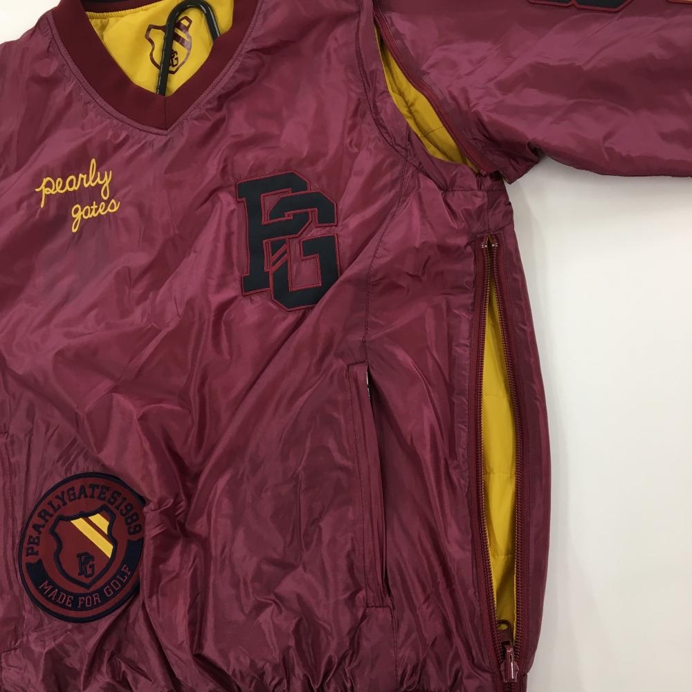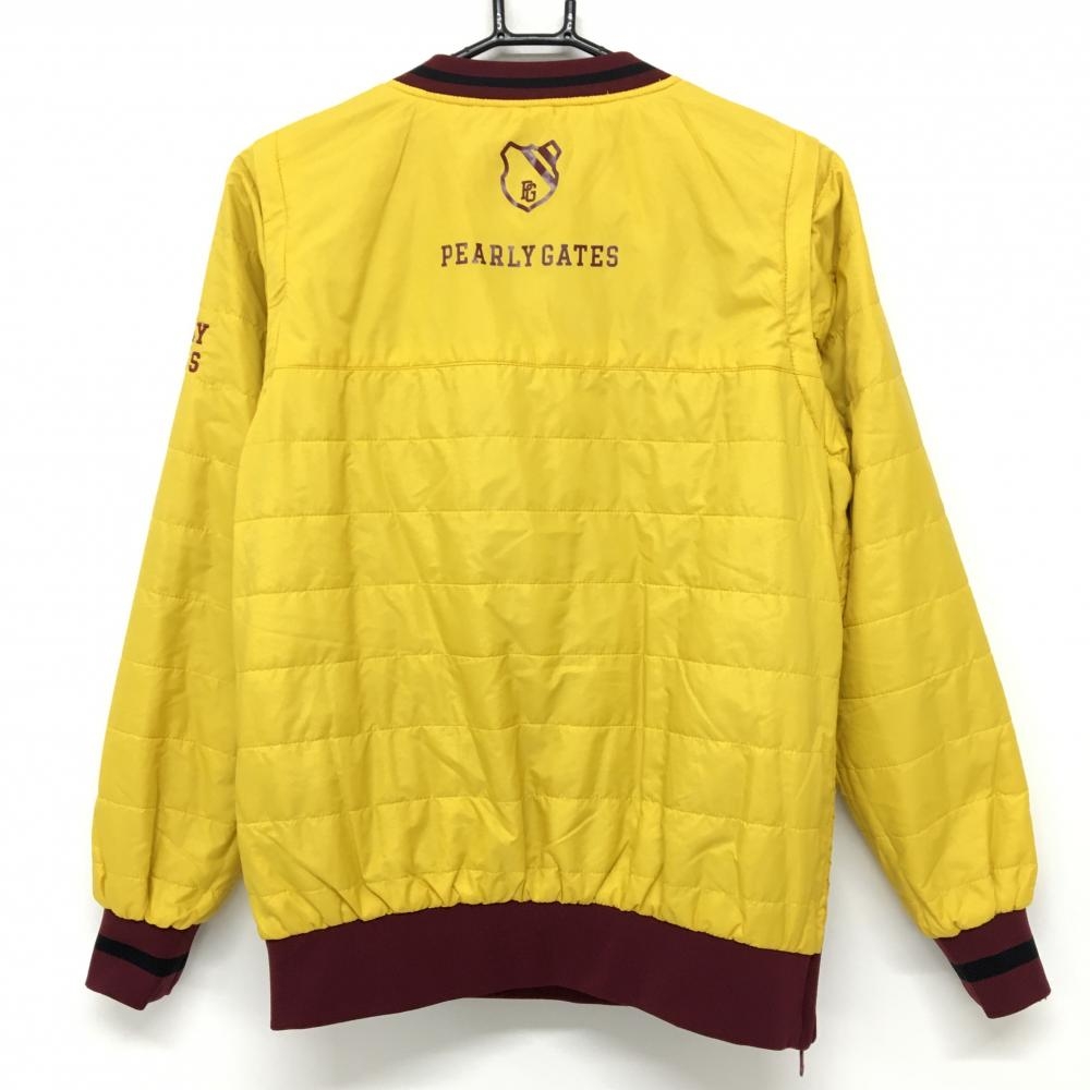 【美品】パーリーゲイツ 4WAY中綿リバーシブルスニード ボルドー×イエロー 袖着脱可 Vネック レディース 0(S) ゴルフウェア PEARLY GATES