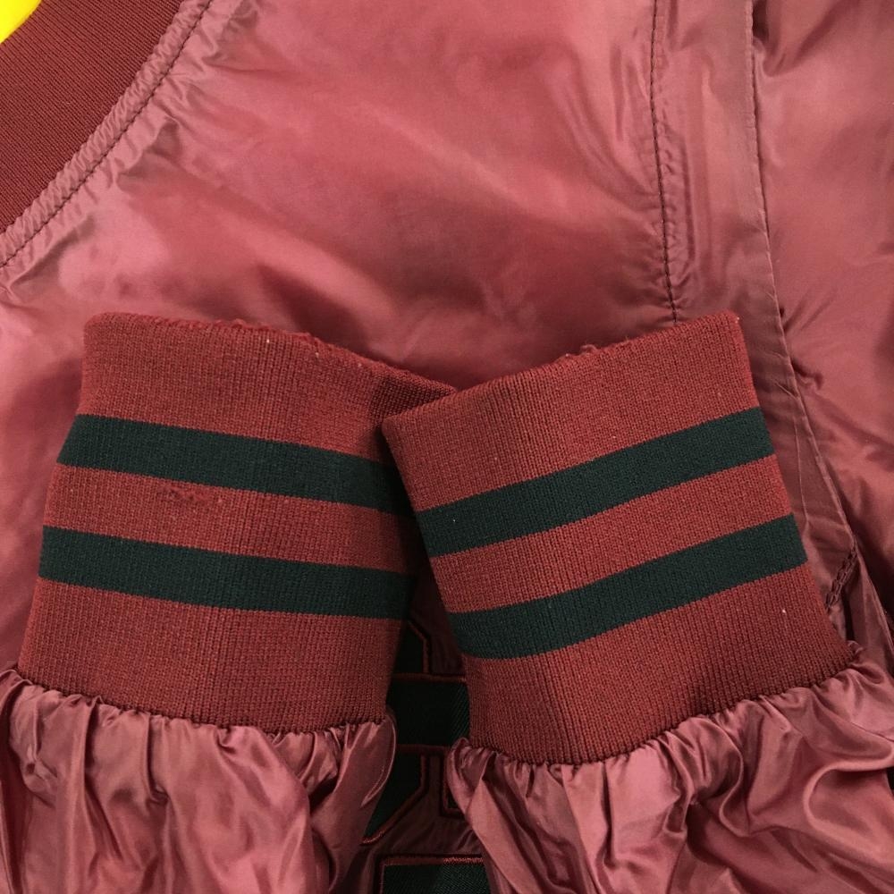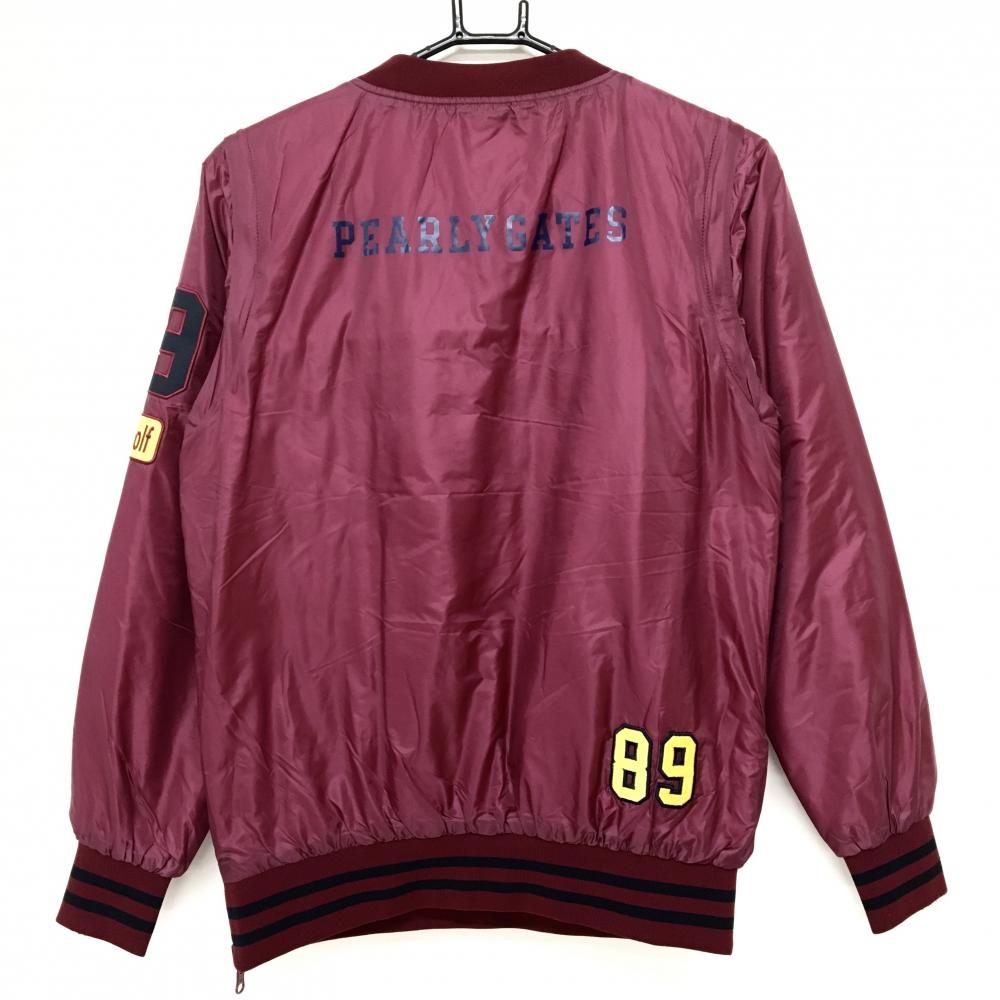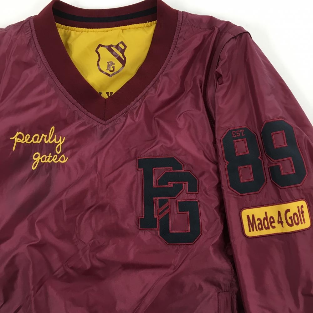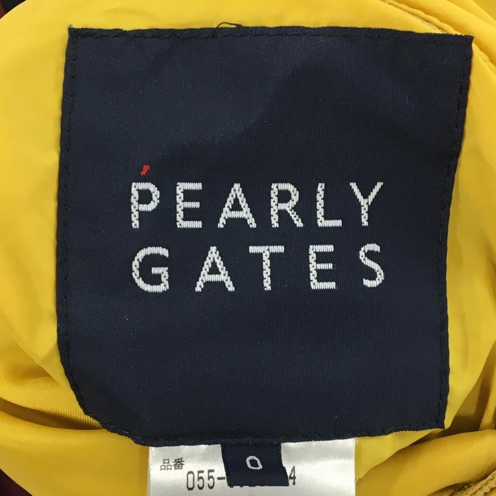 【美品】パーリーゲイツ 4WAY中綿リバーシブルスニード ボルドー×イエロー 袖着脱可 Vネック レディース 0(S) ゴルフウェア PEARLY GATES