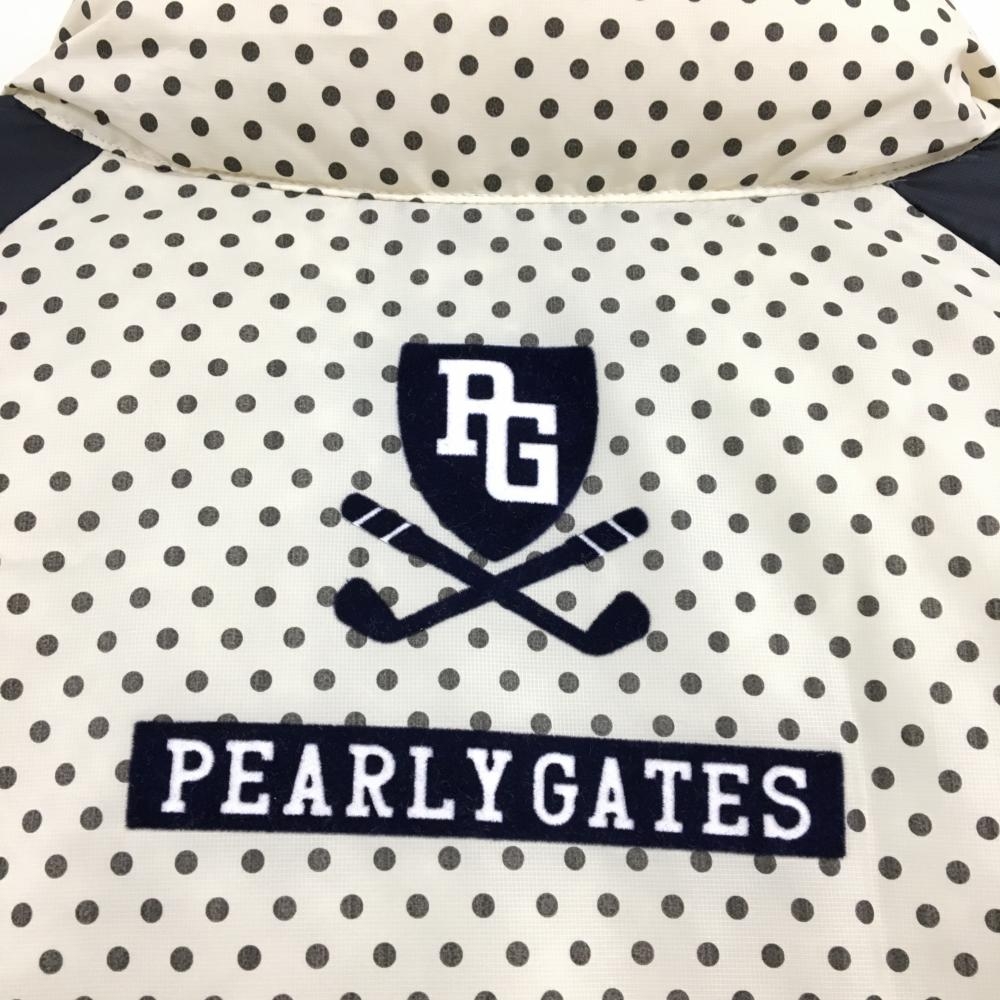 【美品】パーリーゲイツ ダウンジャケット 白×黒 身頃ドット 袖ネイビー 一部ストレッチ 軽量 レディース 0(S) ゴルフウェア PEARLY GATES
