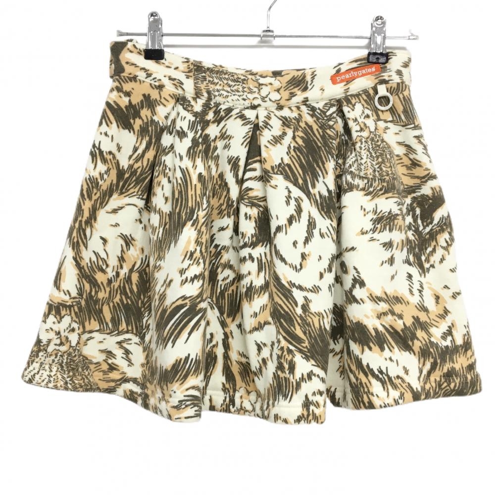 パーリーゲイツ スカート アイボリー×ブラウン アニマル柄 裏起毛 レディース 0(S) ゴルフウェア PEARLY GATES