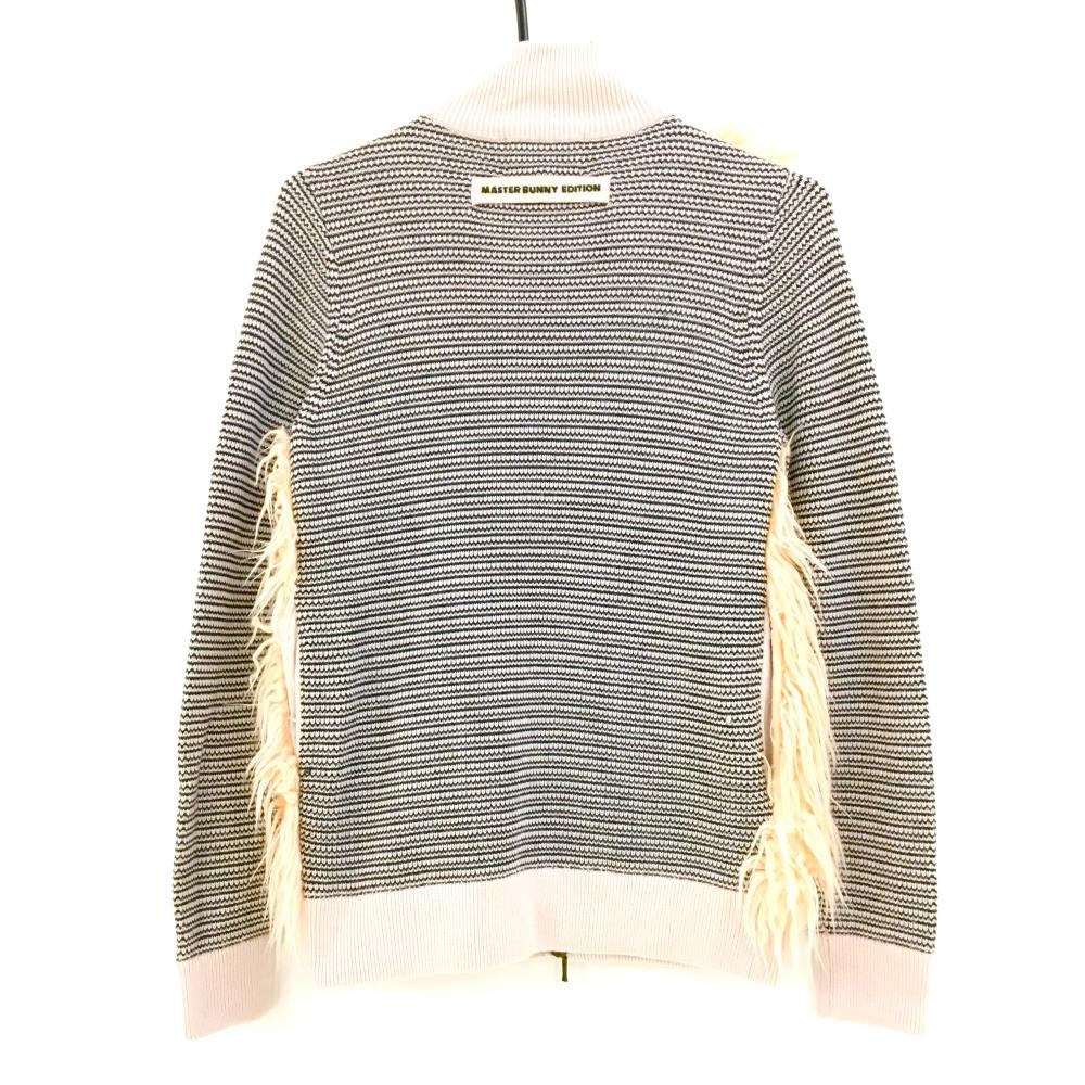 【美品】マスターバニー 異素材ニットジャケット ピンクベージュ×ブラウン ファー レディース 0(S) ゴルフウェア MASTER BUNNY EDITION