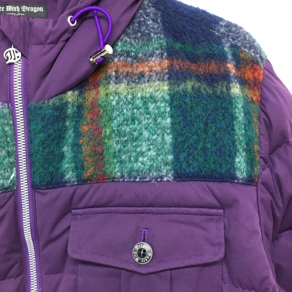 【美品】ダンスウィズドラゴン フード付ダウンジャケット パープル×グリーン 上部起毛素材 メンズ 4(XL) ゴルフウェア Dance With Dragon