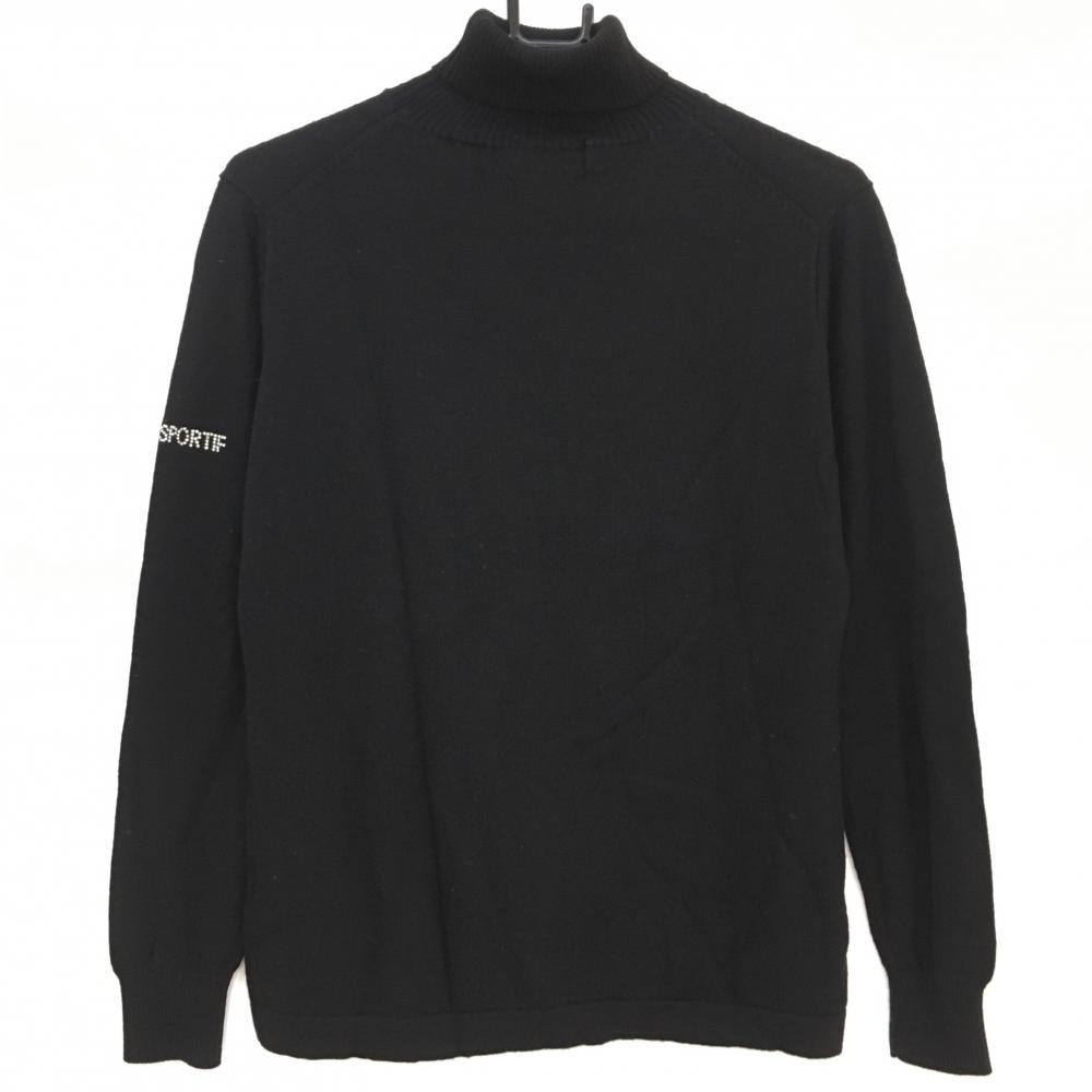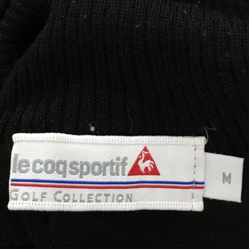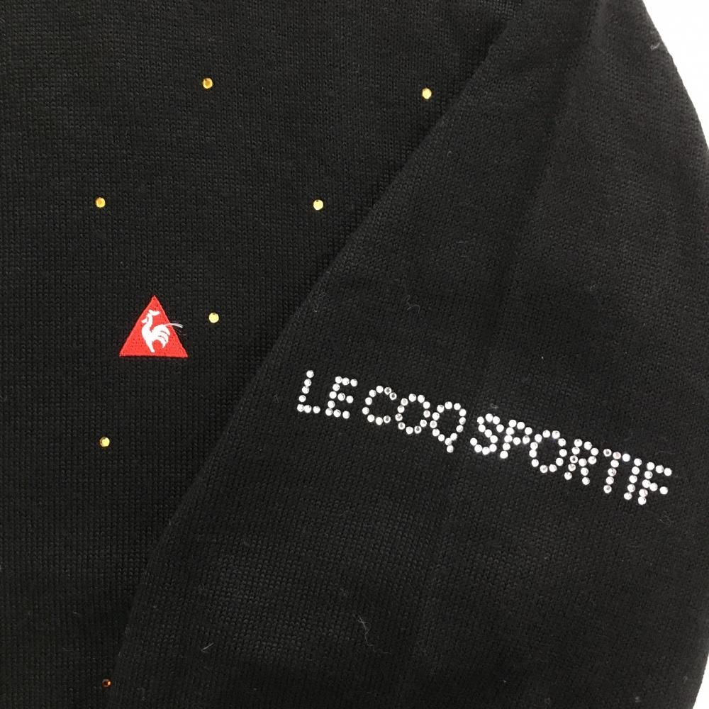 【美品】ルコック タートルネックセーター 黒 ドット柄 ラインストーン ロゴ刺しゅう ウール混 レディース M ゴルフウェア le coq sportif