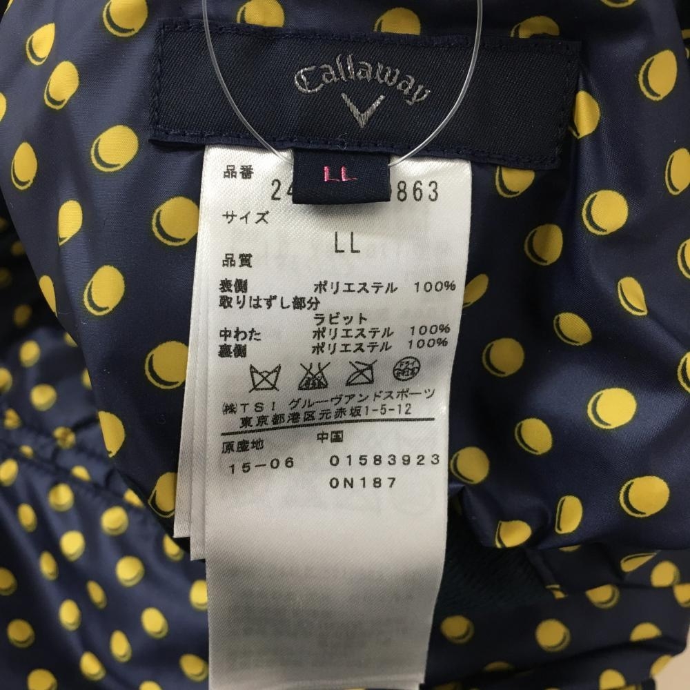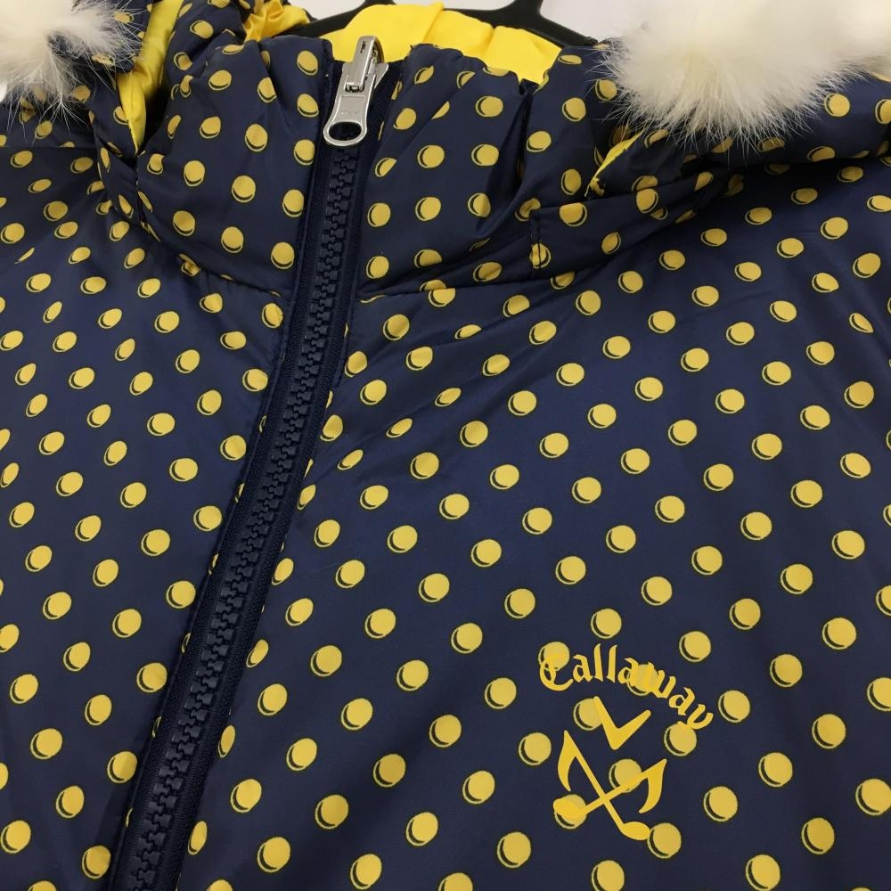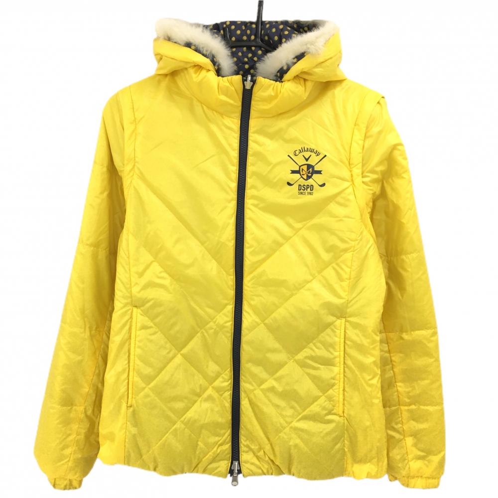 キャロウェイ 中綿リバーシブルジャケット ネイビー×イエロー ドット フード・袖着脱可 レディース M ゴルフウェア Callaway