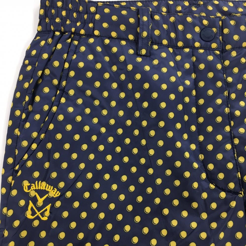 【美品】キャロウェイ 中綿パンツ ネイビー×イエロー ドット ウエスト調節紐付 レディース S ゴルフウェア Callaway