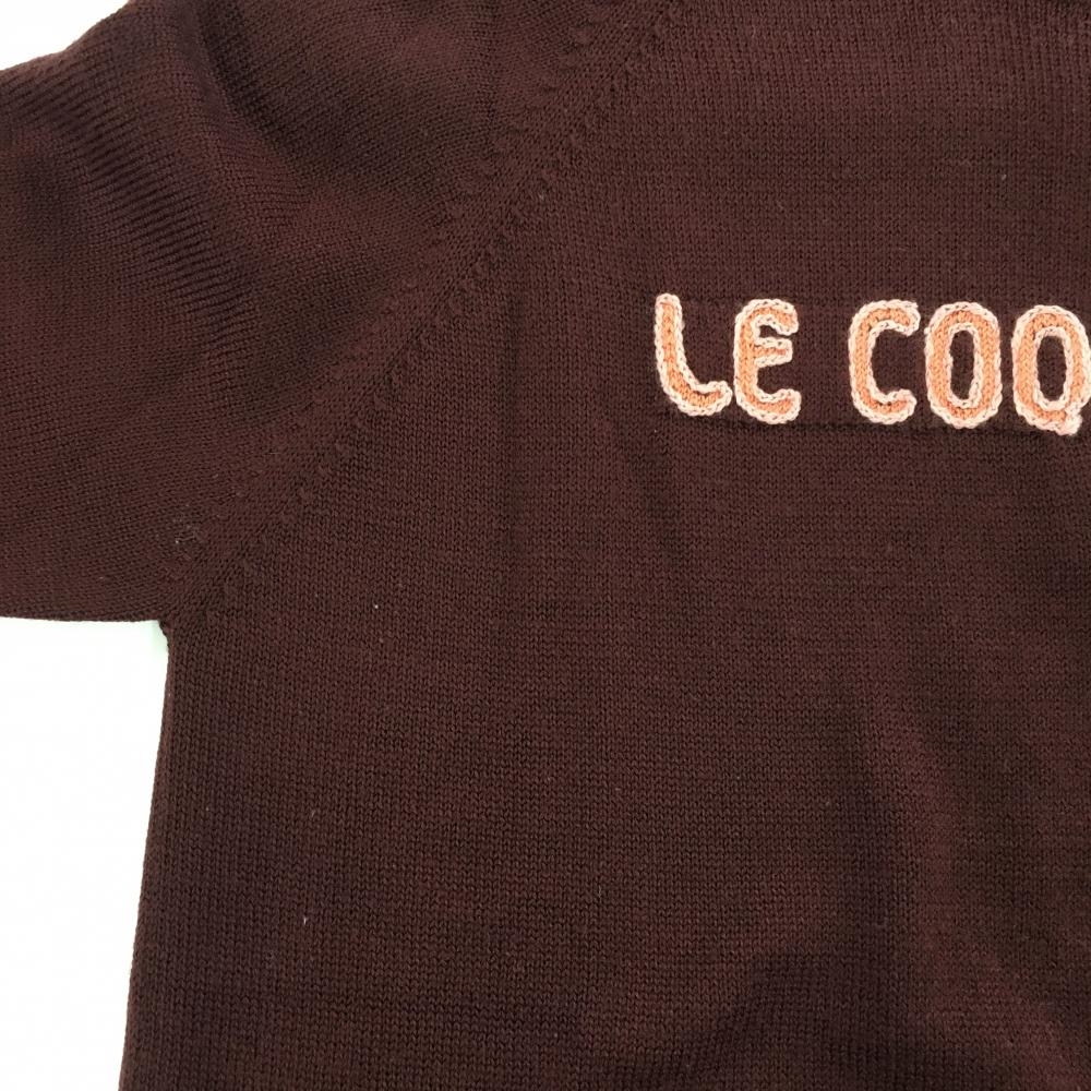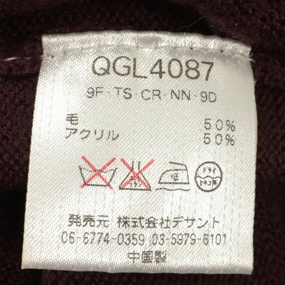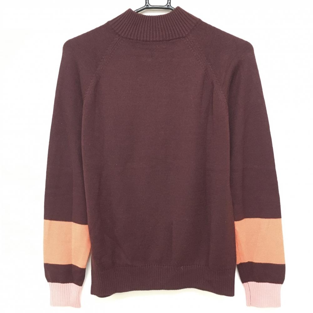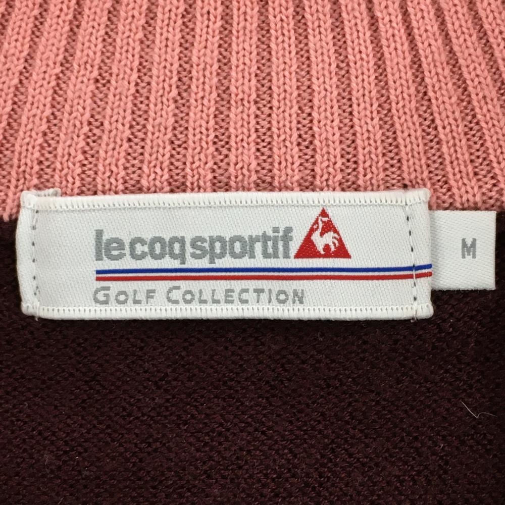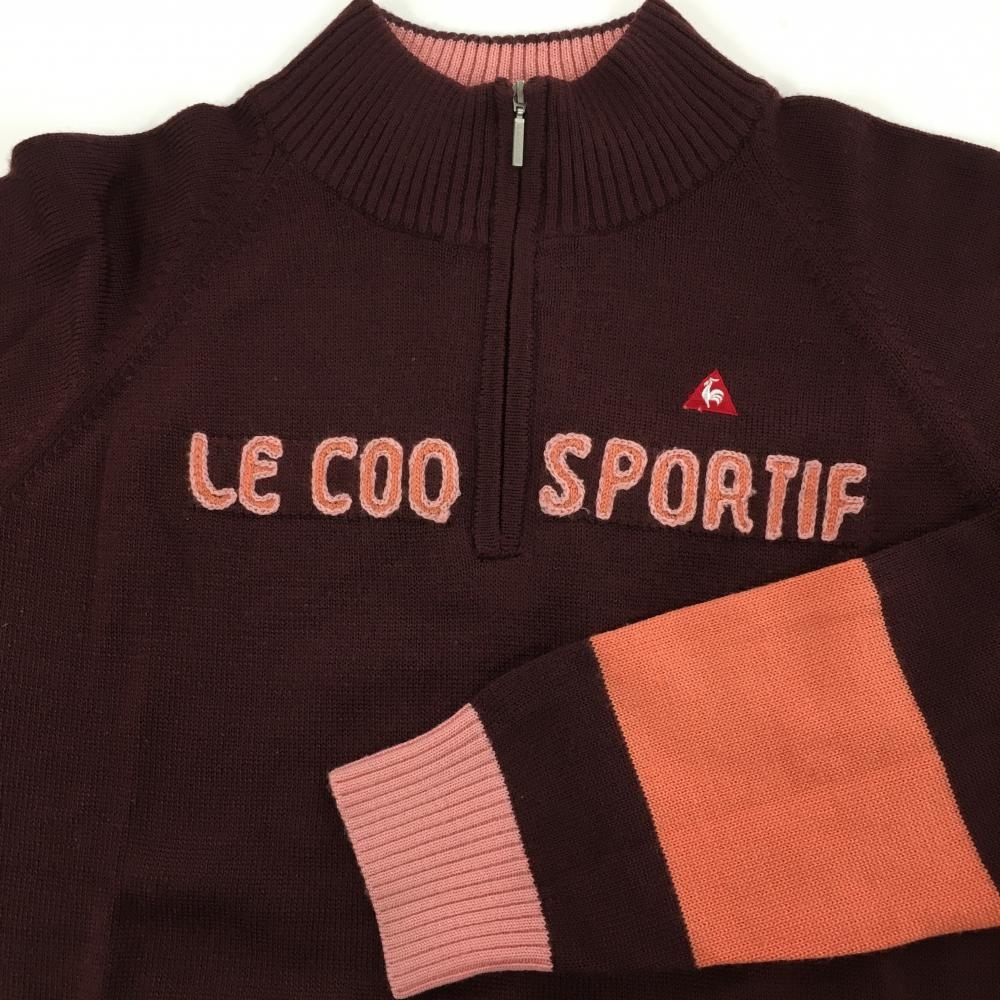 【美品】ルコック ハイネックセーター ボルドー×ピンク 胸元ロゴ ハーフジップ ウール混 レディース M ゴルフウェア le coq sportif