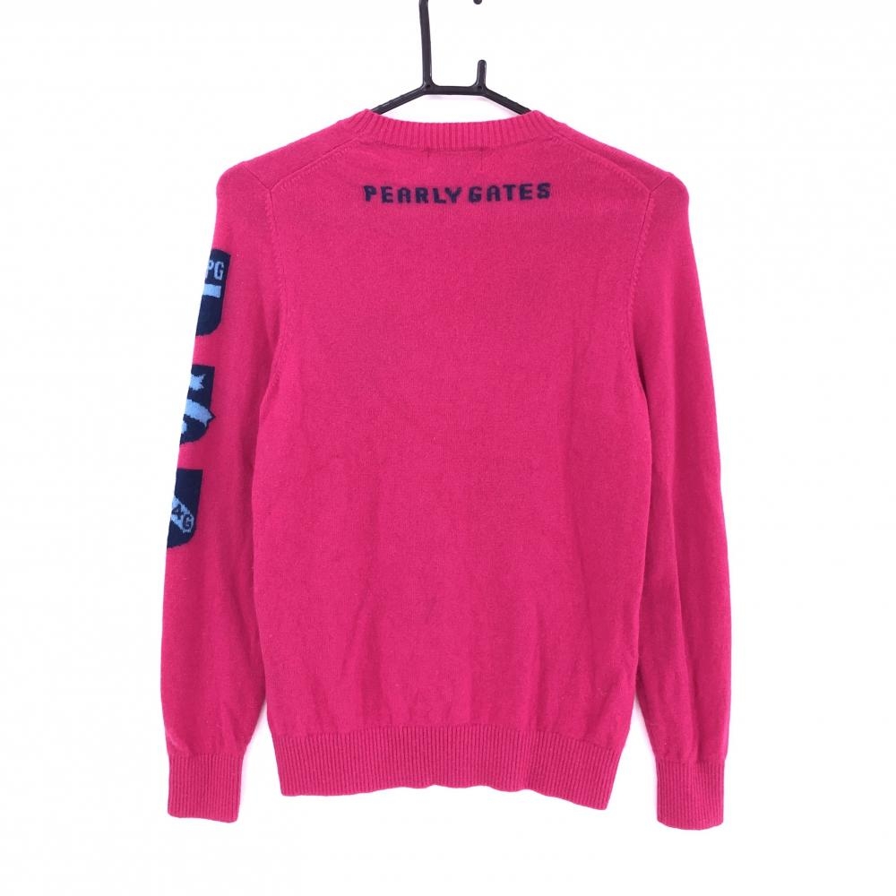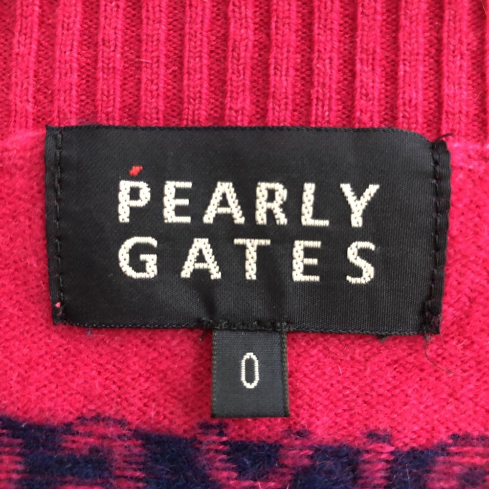 パーリーゲイツ セーター ピンク×ネイビー カシミヤ100% ニット レディース 0(S) ゴルフウェア PEARLY GATES