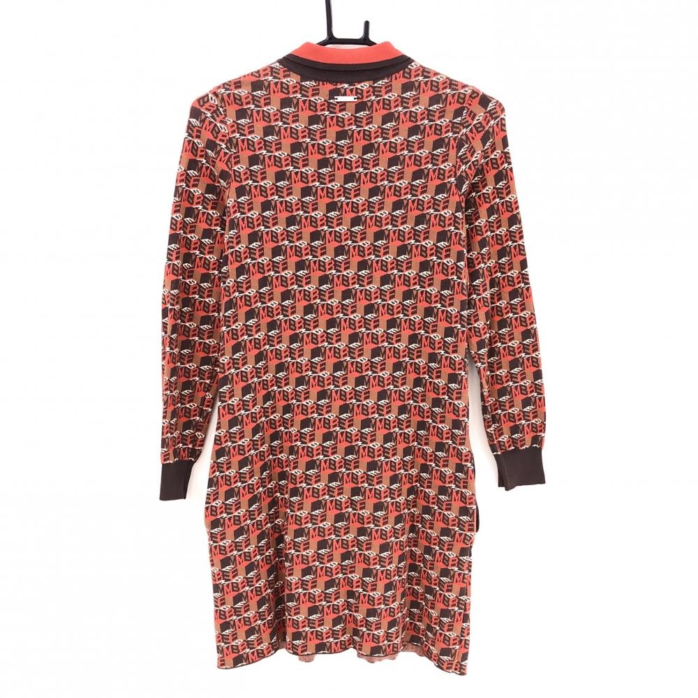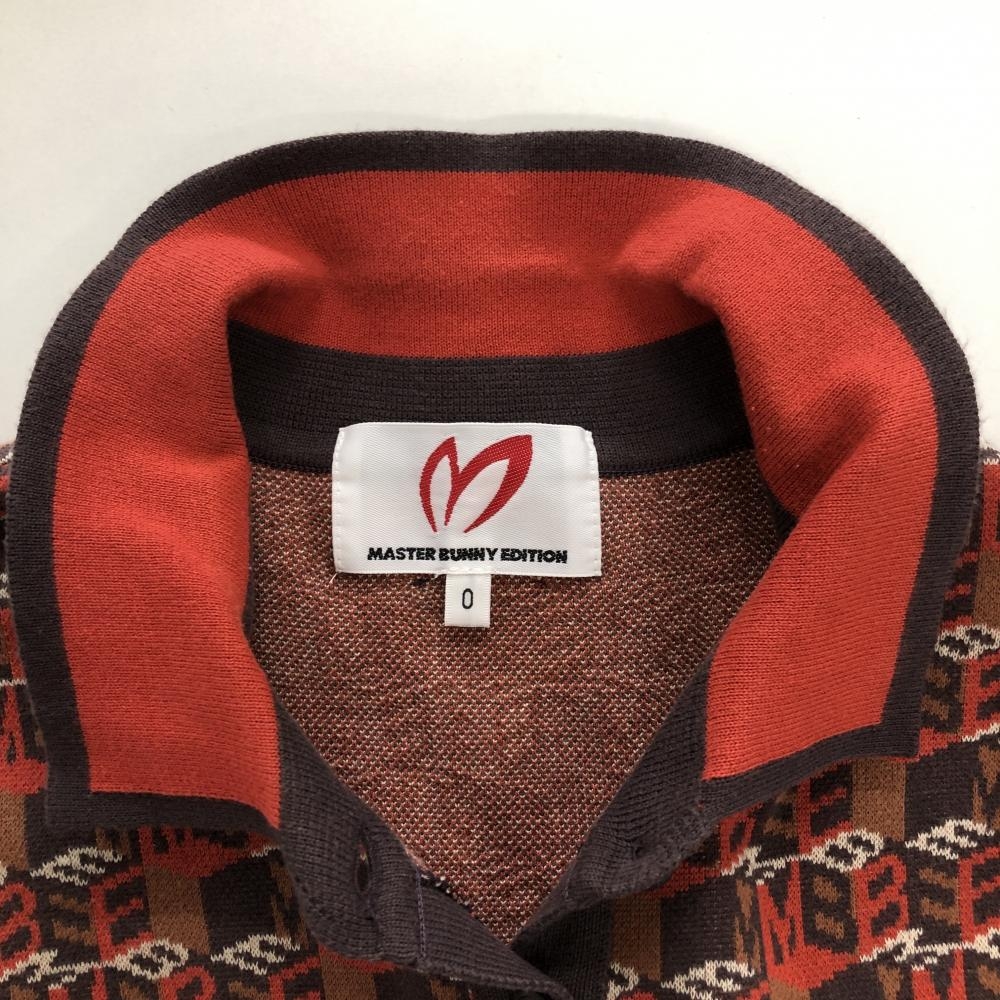 マスターバニー ニットワンピース レッド×ブラウン ロゴ総柄 コットン100% レディース 0(S) ゴルフウェア MASTER BUNNY EDITION