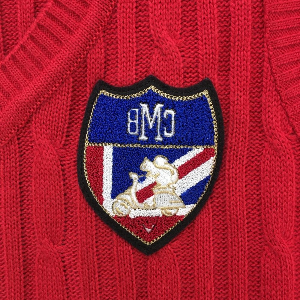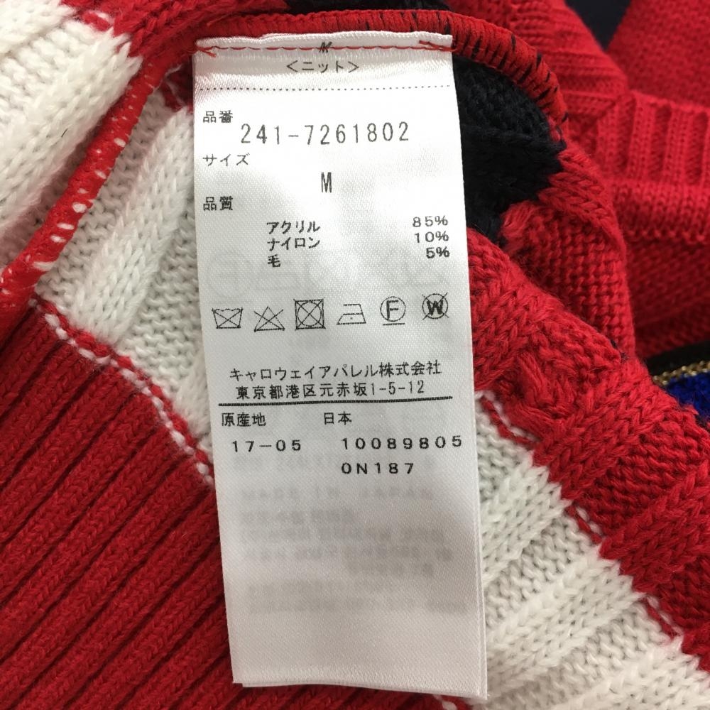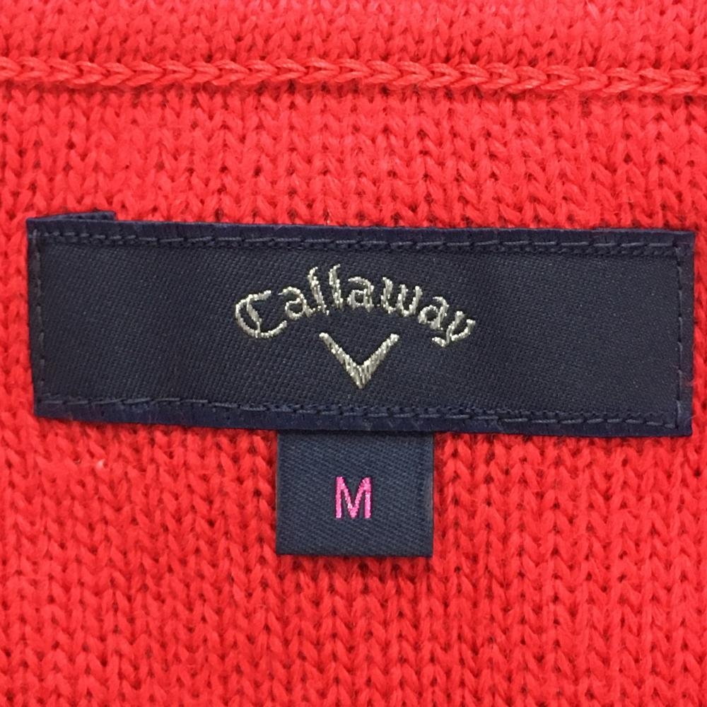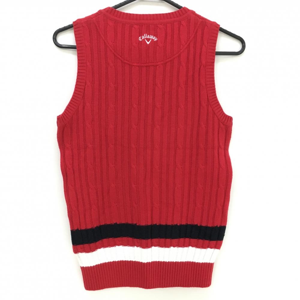 【超美品】キャロウェイ ニットベスト レッド×ネイビー ケーブル編み ウール混 Vネック レディース M ゴルフウェア Callaway