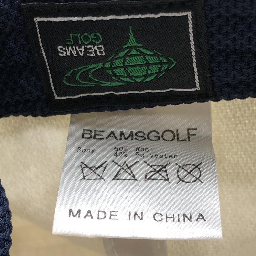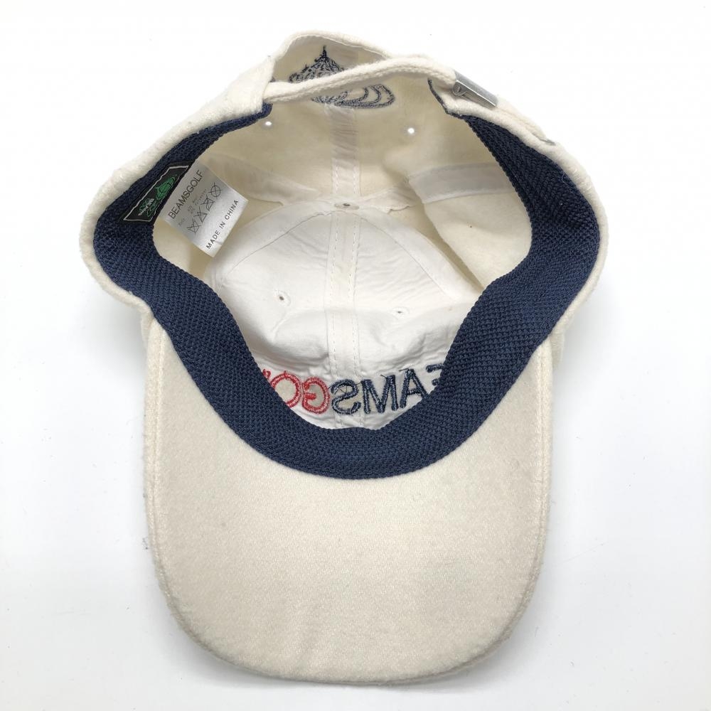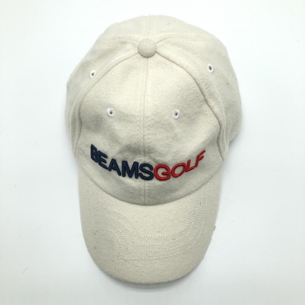 【美品】ビームスゴルフ キャップ アイボリー ウール混 ロゴ刺しゅう ゴルフウェア BEAMS GOLF