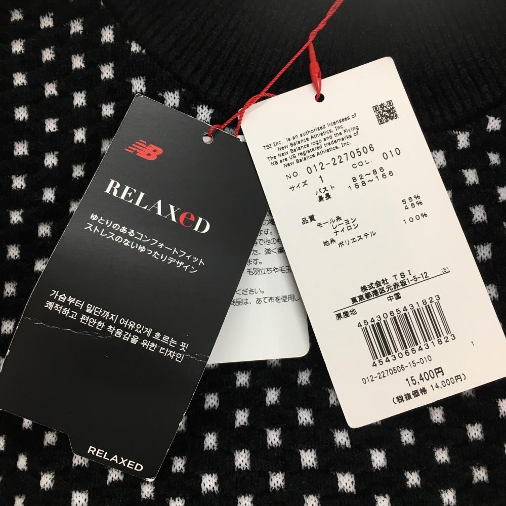 【新品】ニューバランスゴルフ セーター 黒×白 身頃ブロック柄 ニット レディース 1(M) ゴルフウェア 2022年モデル New Balance