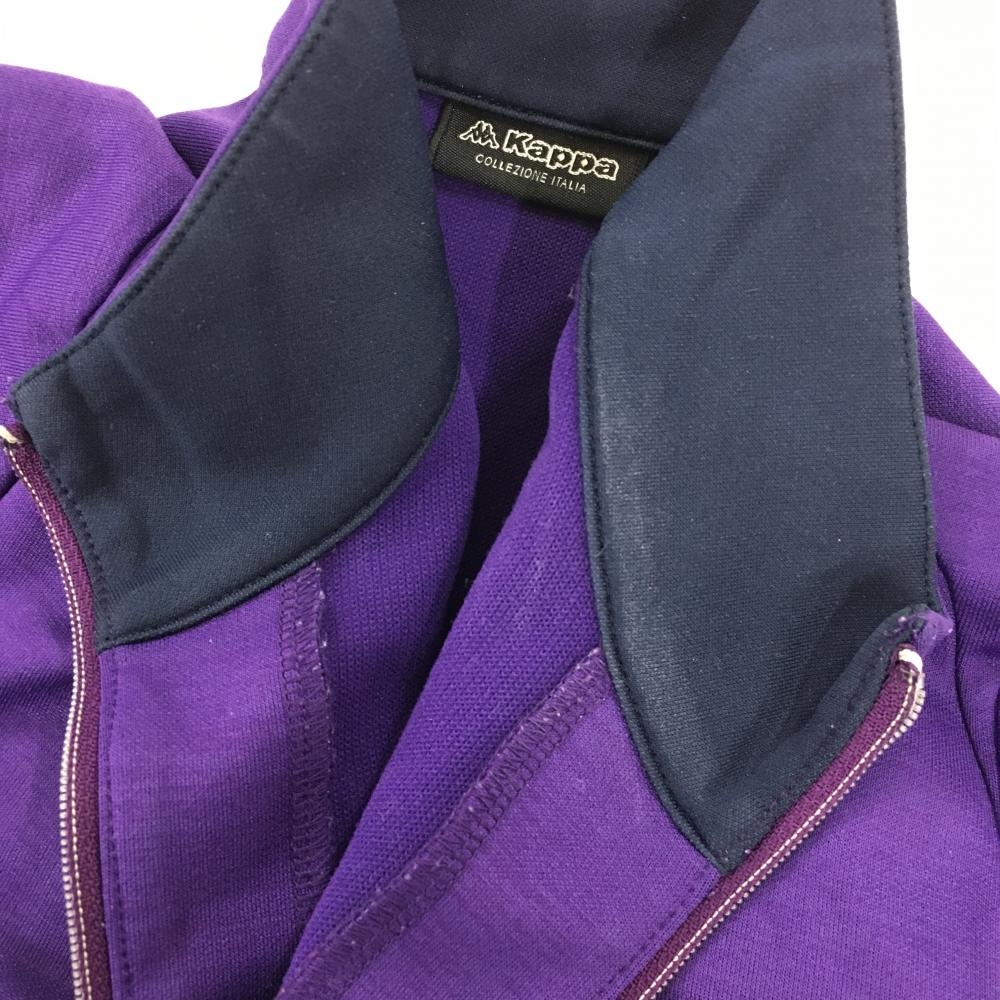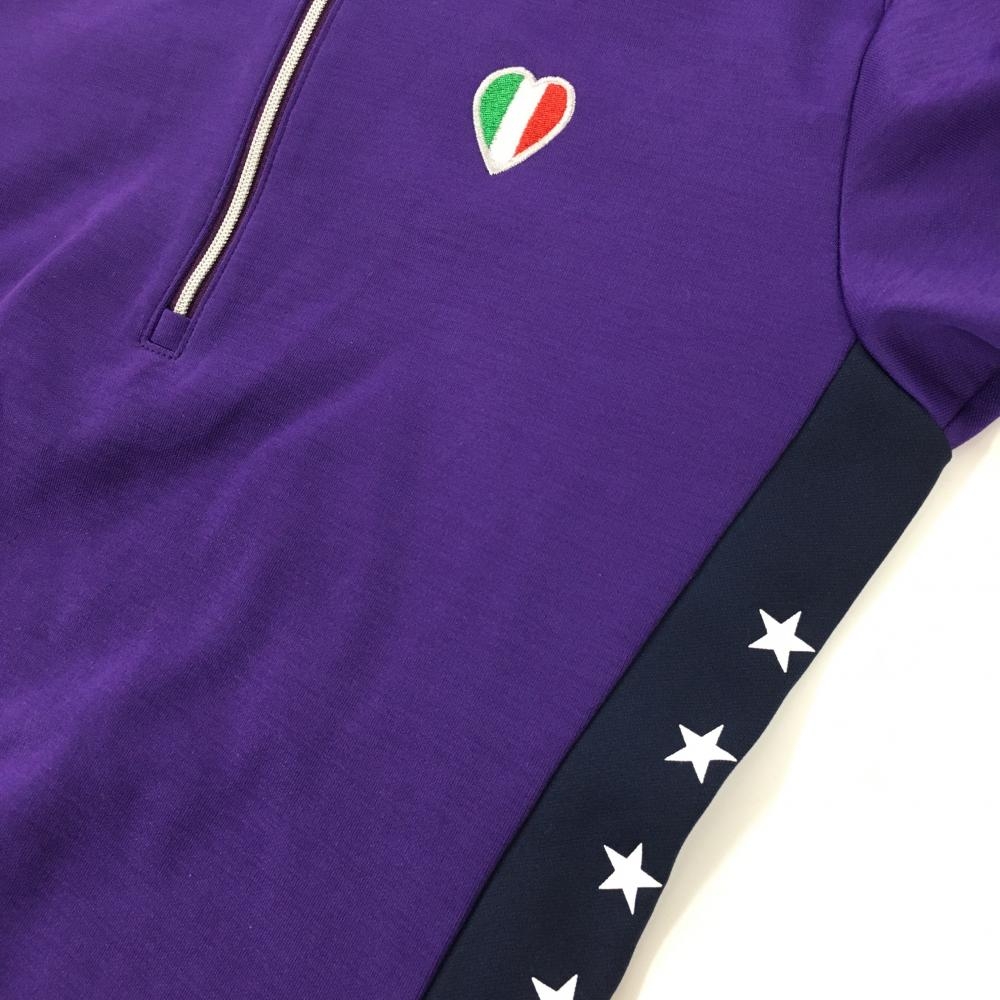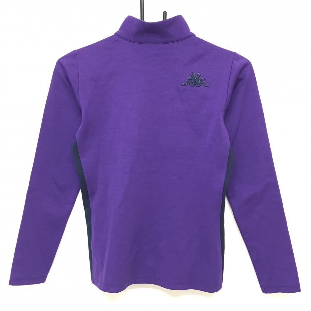 カッパ 長袖ハイネックシャツ パープル×ネイビー ハーフジップ サイド星ライン ハートワッペン レディース S ゴルフウェア Kappa