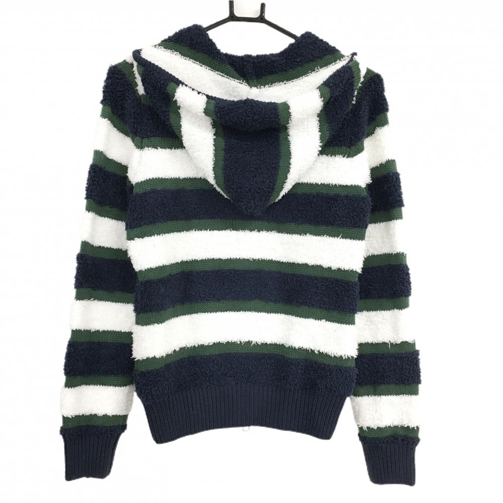 キャロウェイ ニットパーカー 一部ボア ボーダー柄 ウール混 レディース M ゴルフウェア Callaway
