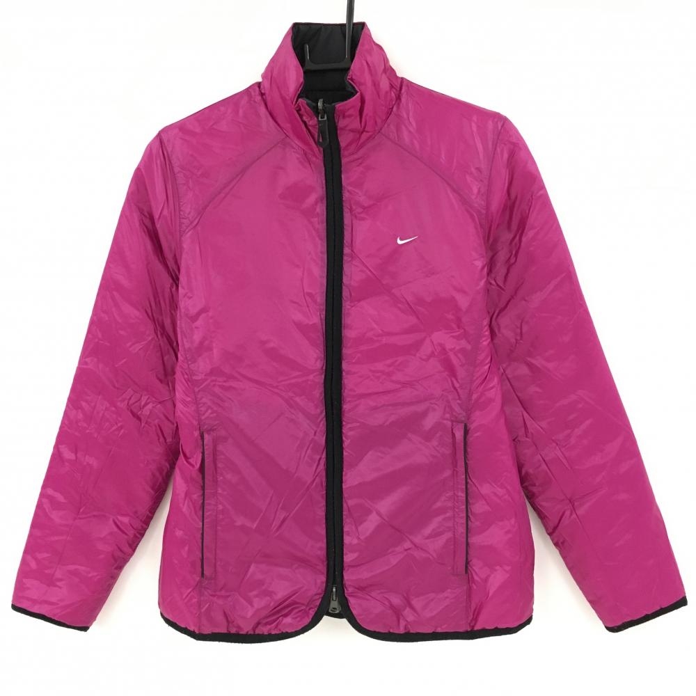 【美品】ナイキゴルフ 中綿リバーシブルジャケット 黒 裏ピンク 無地 レディース M ゴルフウェア NIKE