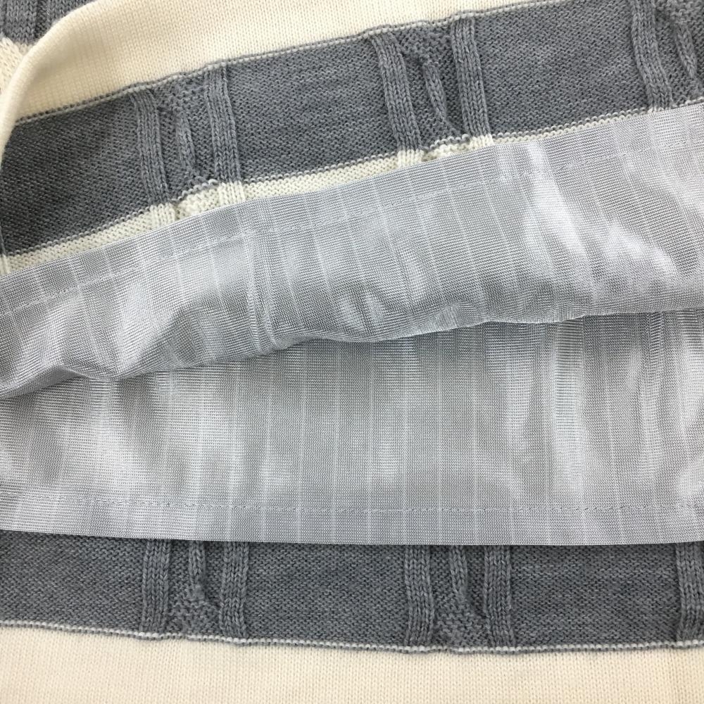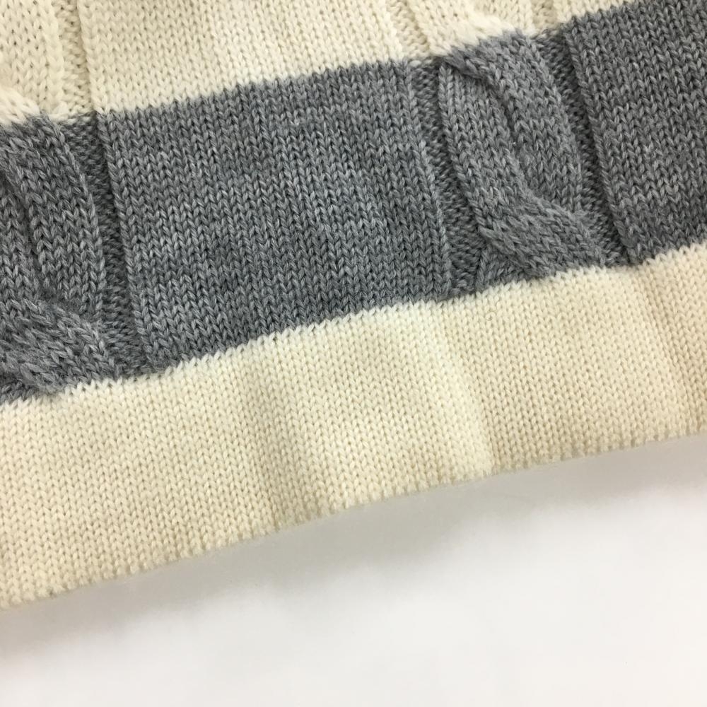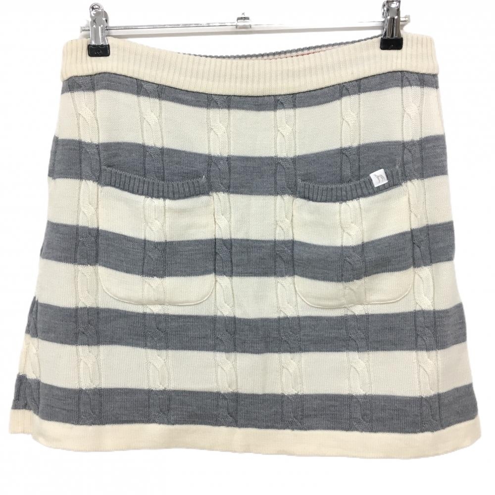 【美品】アダバット ニットスカート アイボリー×グレー ボーダー ケーブル編み 蓄熱裏地 レディース 40(L) ゴルフウェア adabat