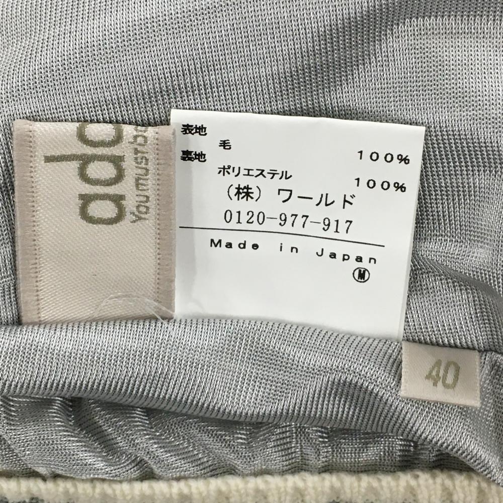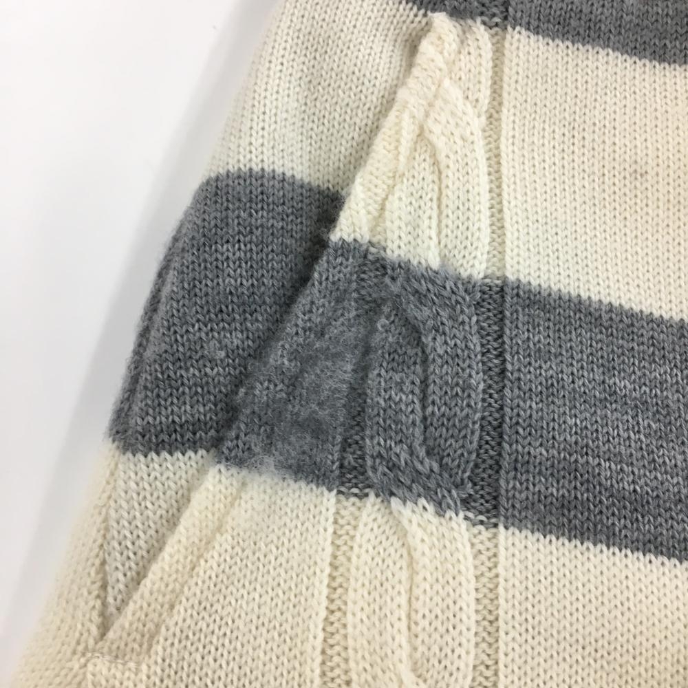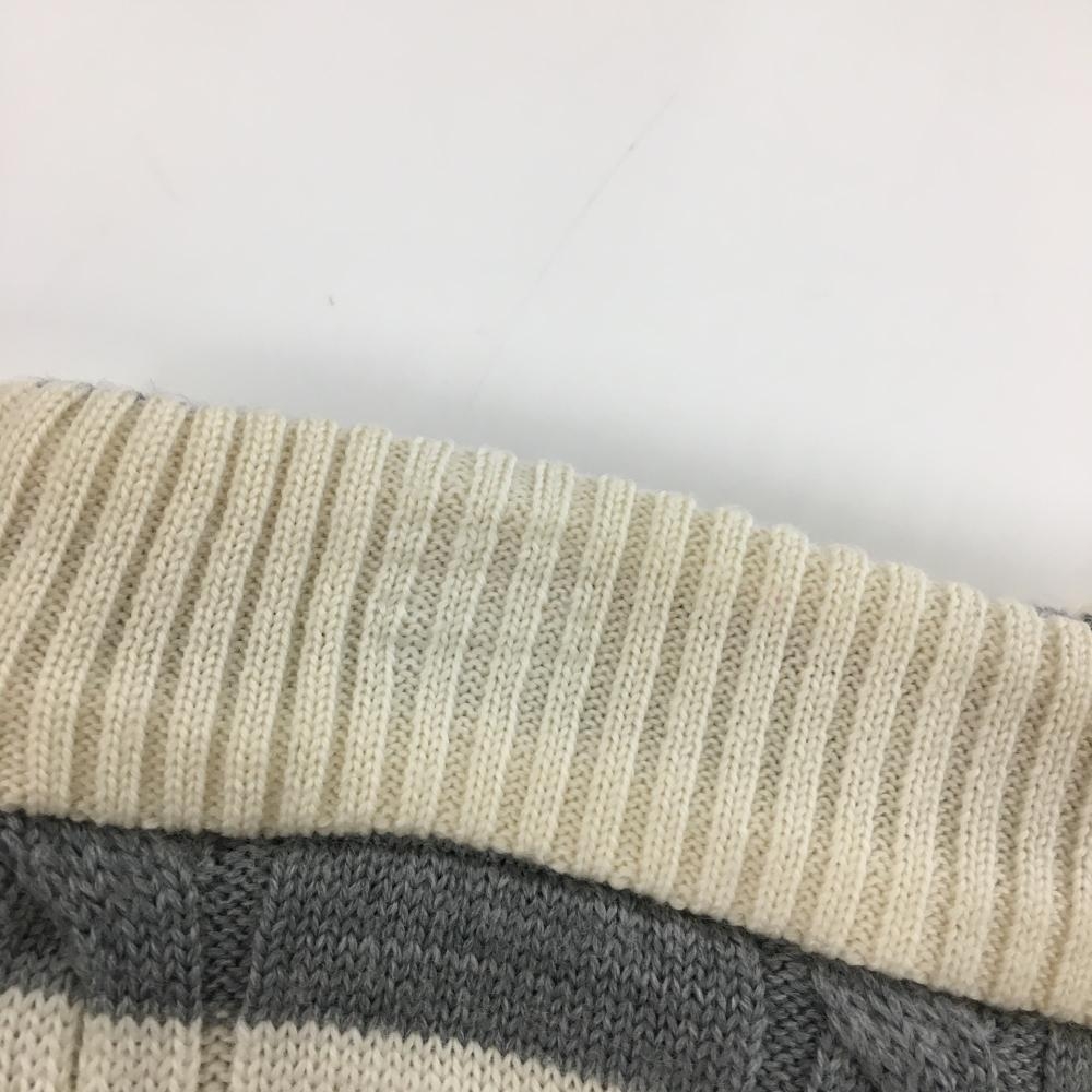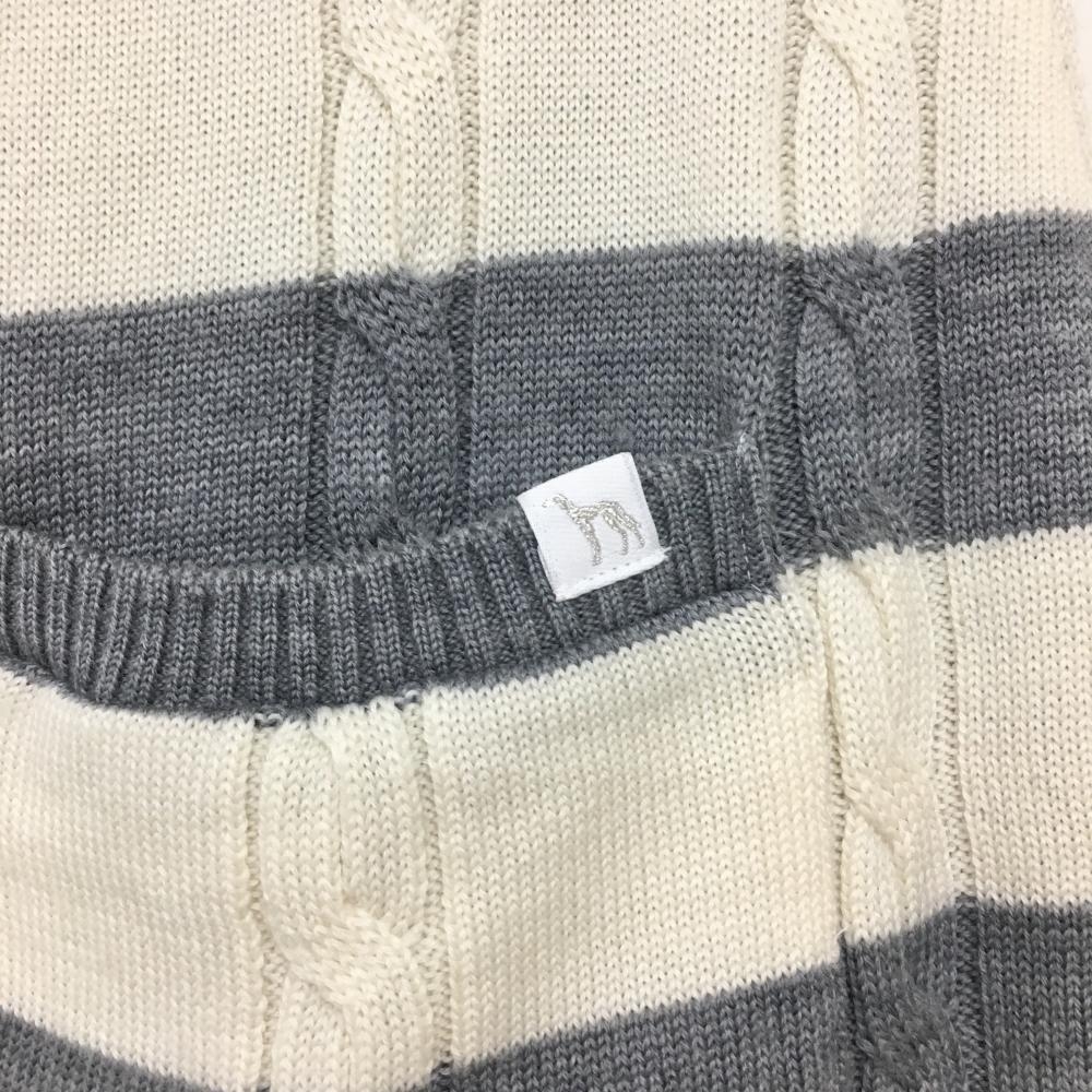 【美品】アダバット ニットスカート アイボリー×グレー ボーダー ケーブル編み 蓄熱裏地 レディース 40(L) ゴルフウェア adabat