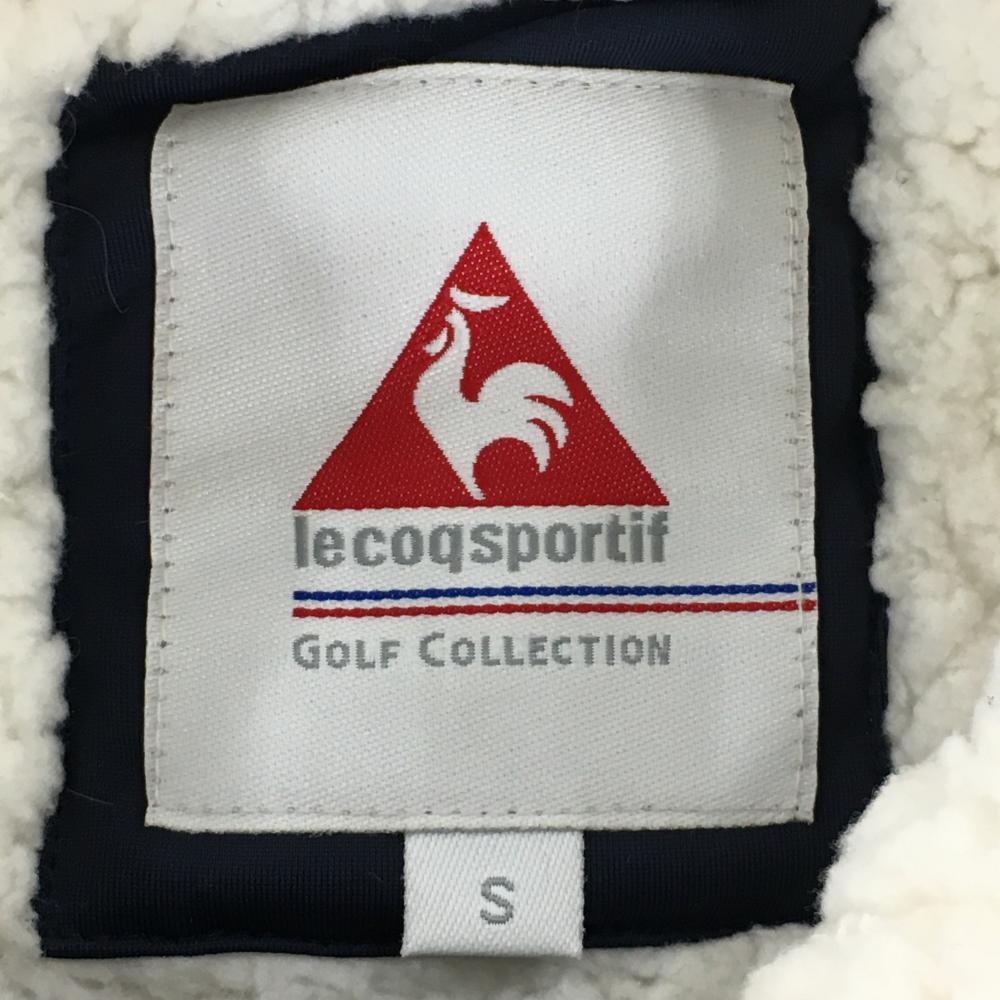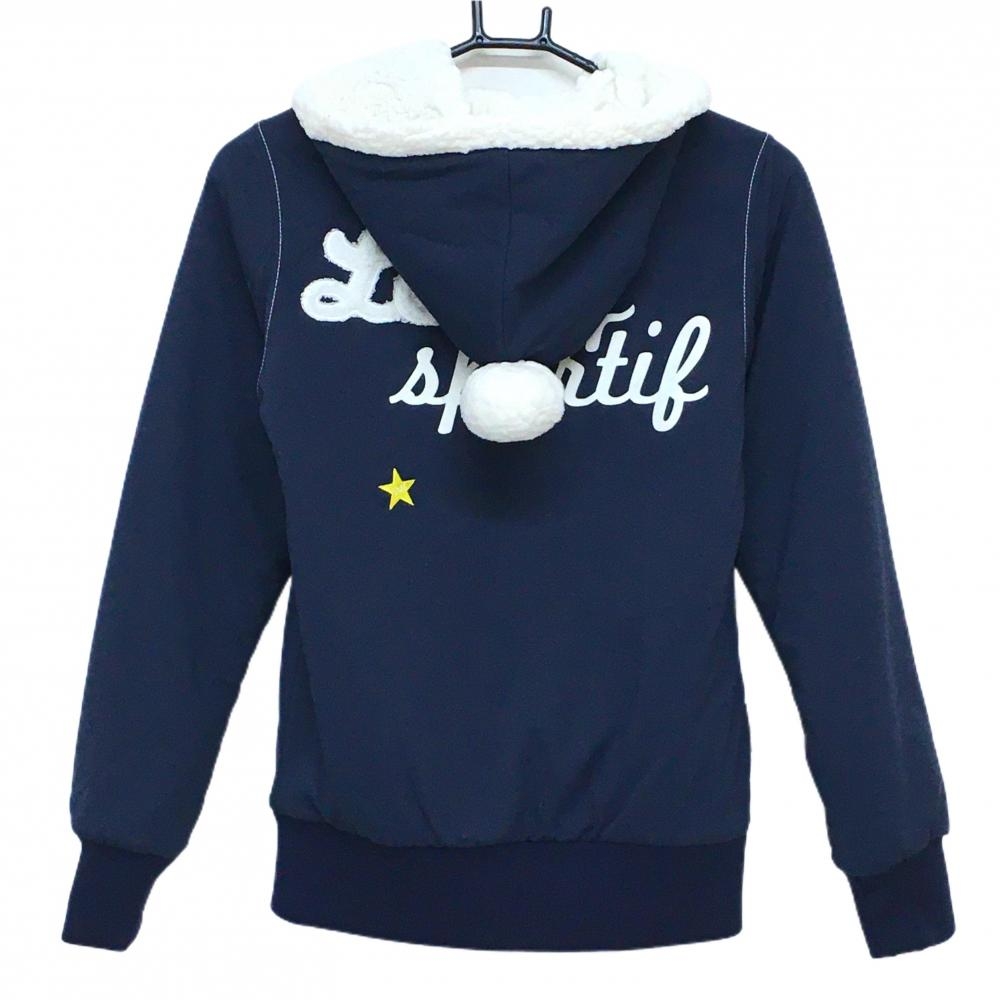 ルコック フード付きブルゾン ネイビー×白 ステッチ バックビッグロゴ 裏ボア レディース S ゴルフウェア le coq sportif