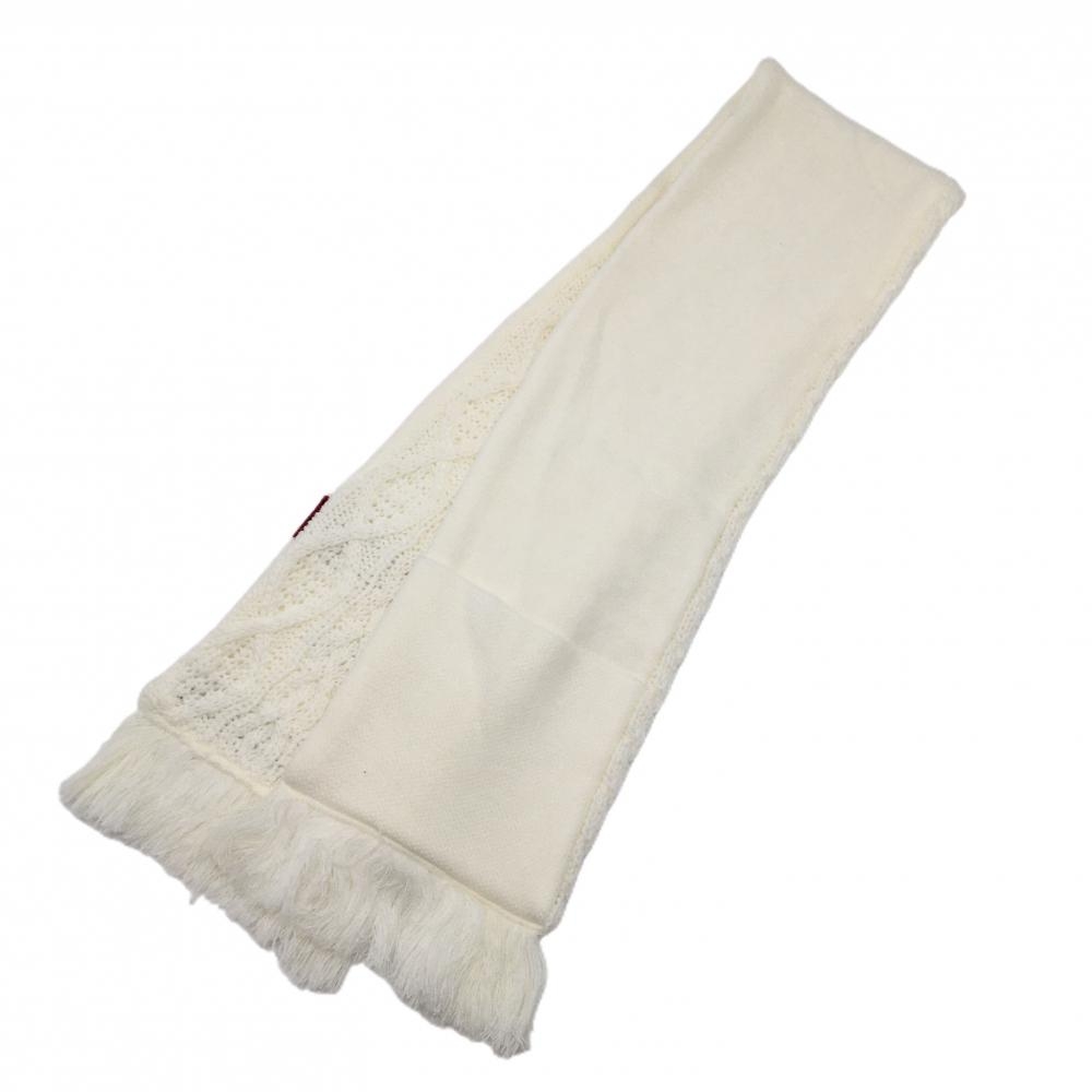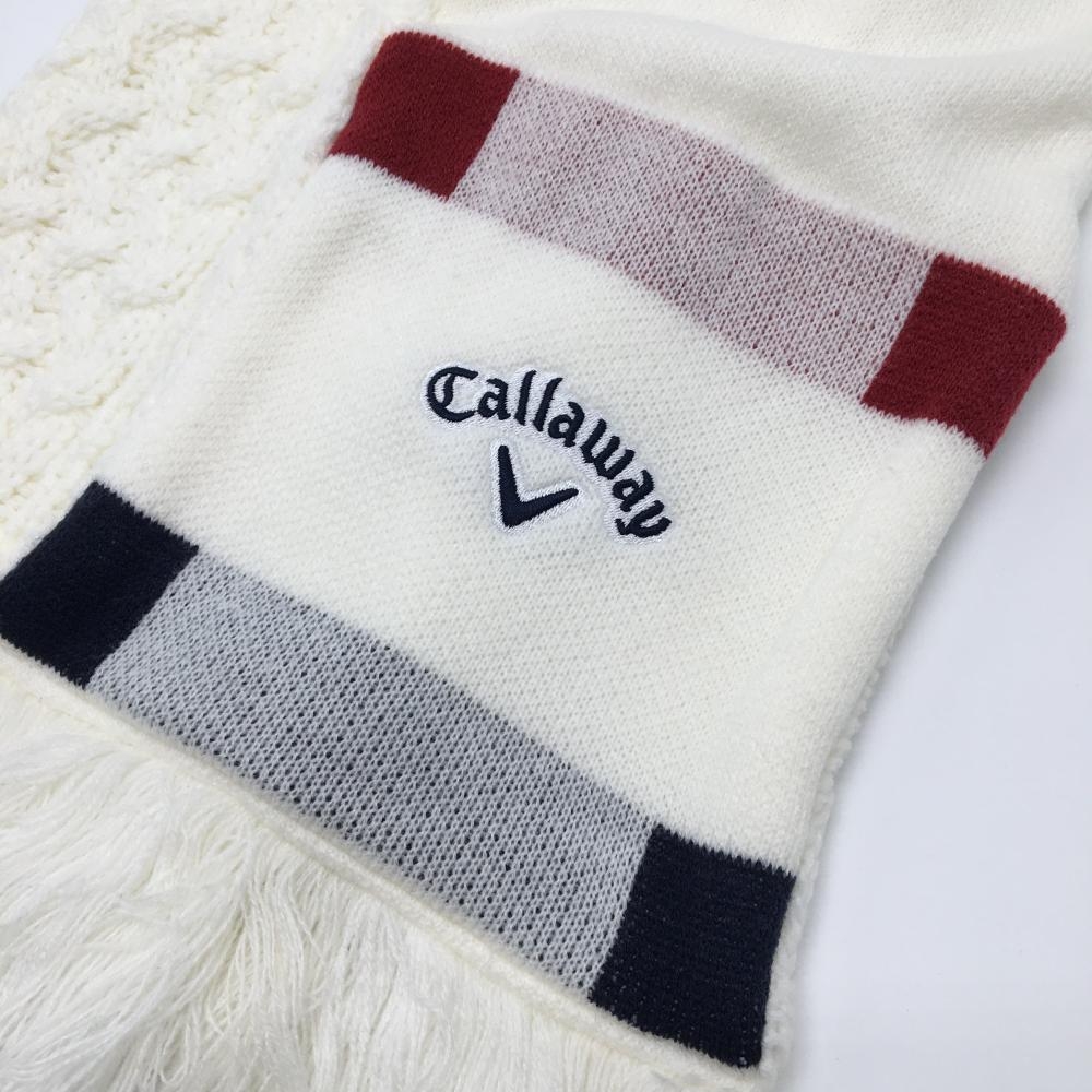 【超美品】キャロウェイ ニットマフラー 白 ケーブル編み ロゴネイビー FR ゴルフウェア Callaway