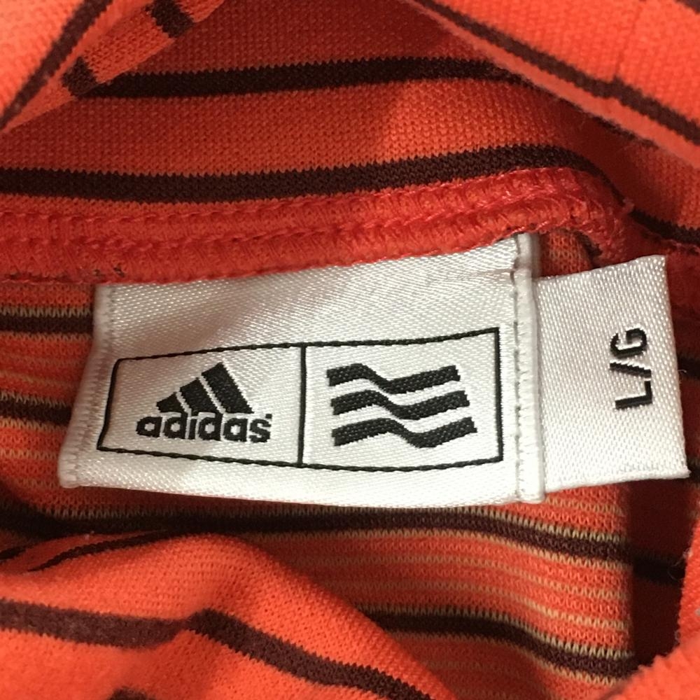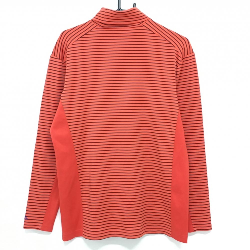 アディダス 長袖タートルネックシャツ レッド×黒 ボーダー柄 ロゴ刺しゅう メンズ L ゴルフウェア adidas