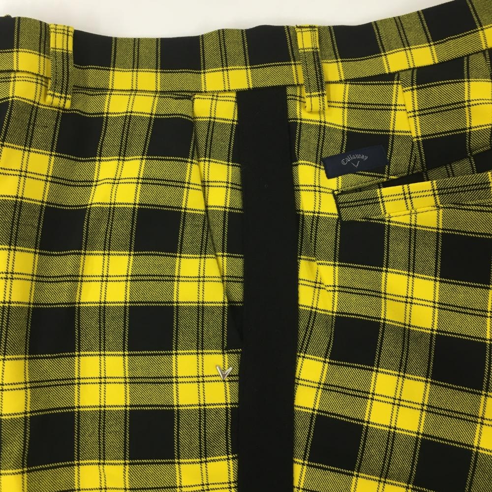 【超美品】キャロウェイ パンツ イエロー×黒 チェック サイドライン メンズ S ゴルフウェア 2023年モデル Callaway