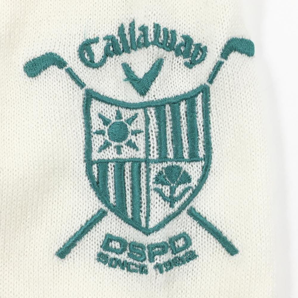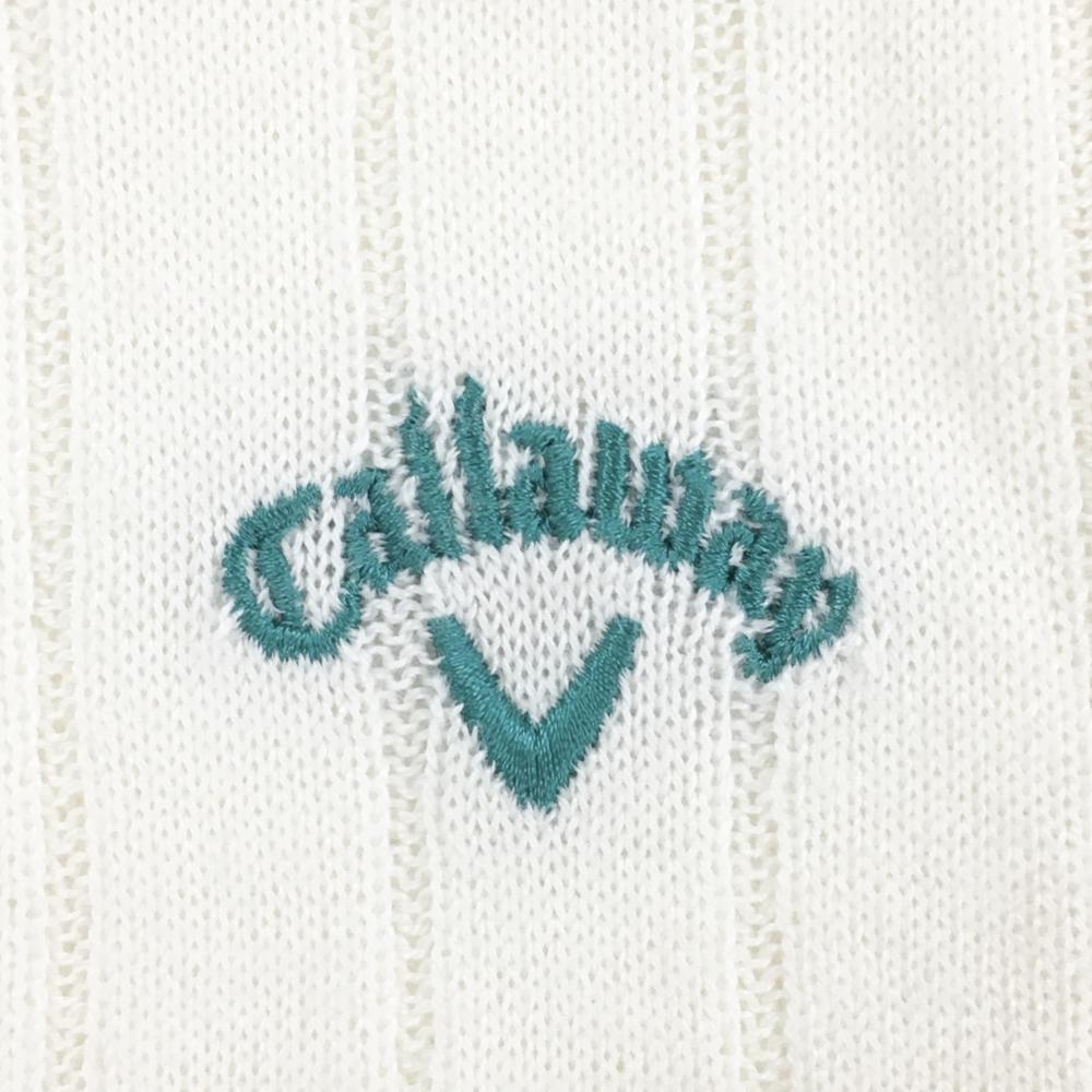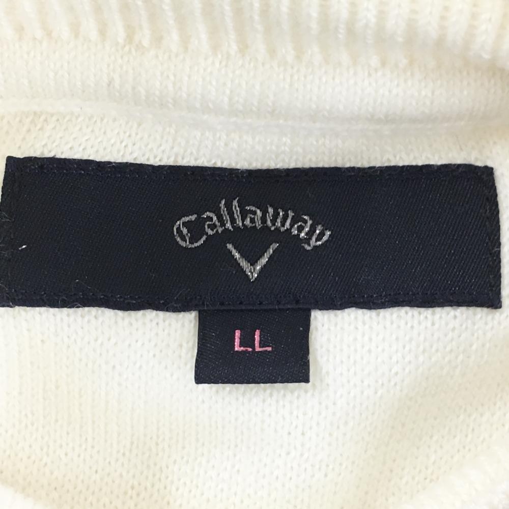 【美品】キャロウェイ タートルネックセーター 白 ロゴ刺しゅうグリーン ニット レディース LL ゴルフウェア Callaway