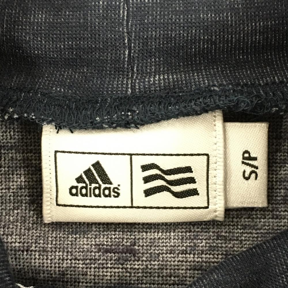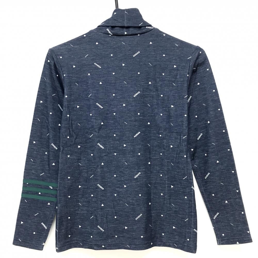 【超美品】アディダス 長袖ハイネックシャツ ネイビー×白 ロゴ総柄 タートル 裏微起毛 レディース S/P ゴルフウェア adidas