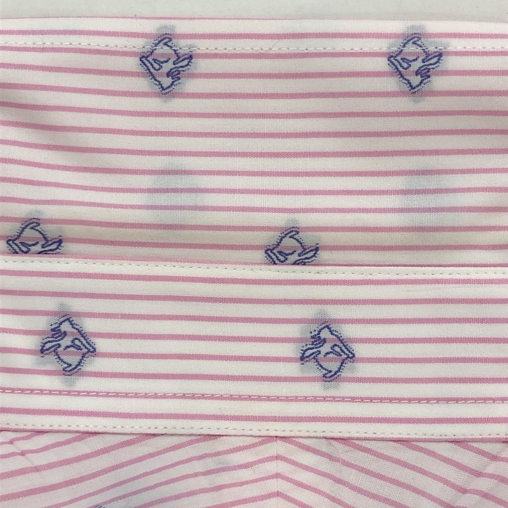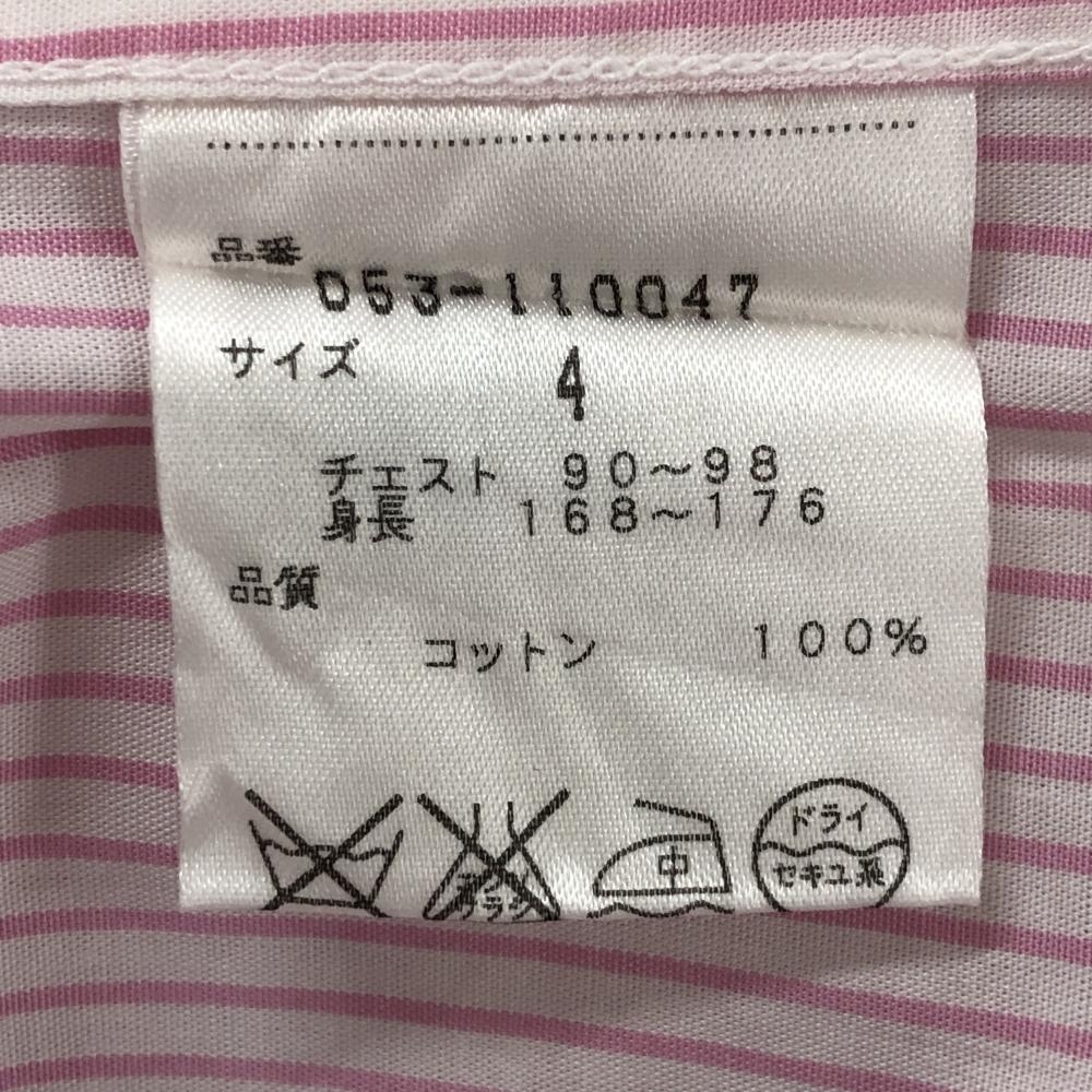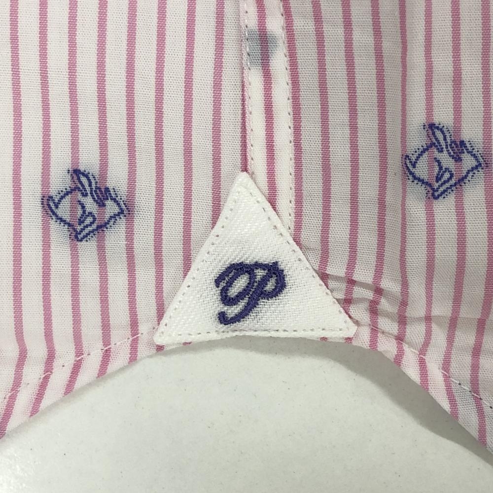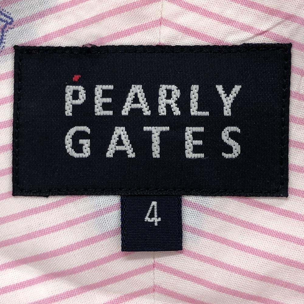 パーリーゲイツ 長袖シャツ 白×ピンク×ブルー ストライプ 総柄 コットン100% メンズ 4(M) ゴルフウェア PEARLY GATES