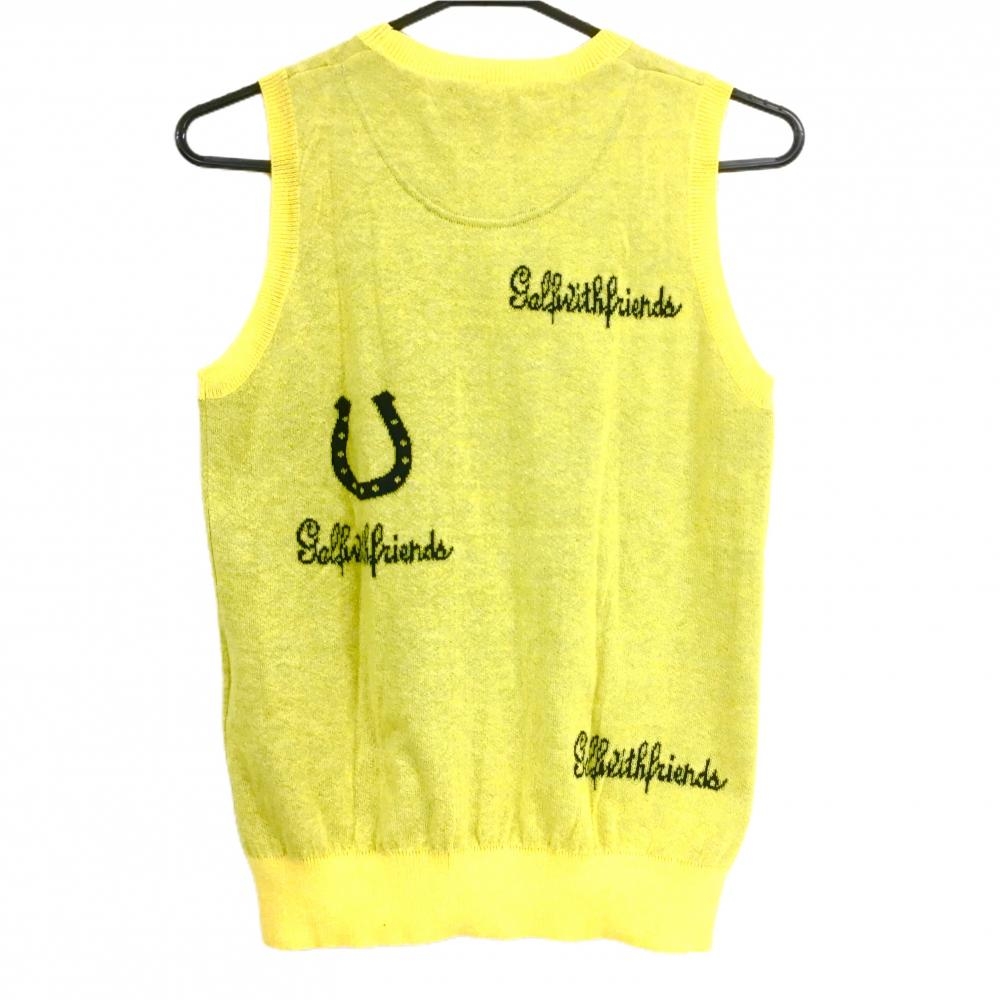 【美品】キャロウェイ ニットベスト イエロー×黒 前柄 サボテン レディース L ゴルフウェア Callaway